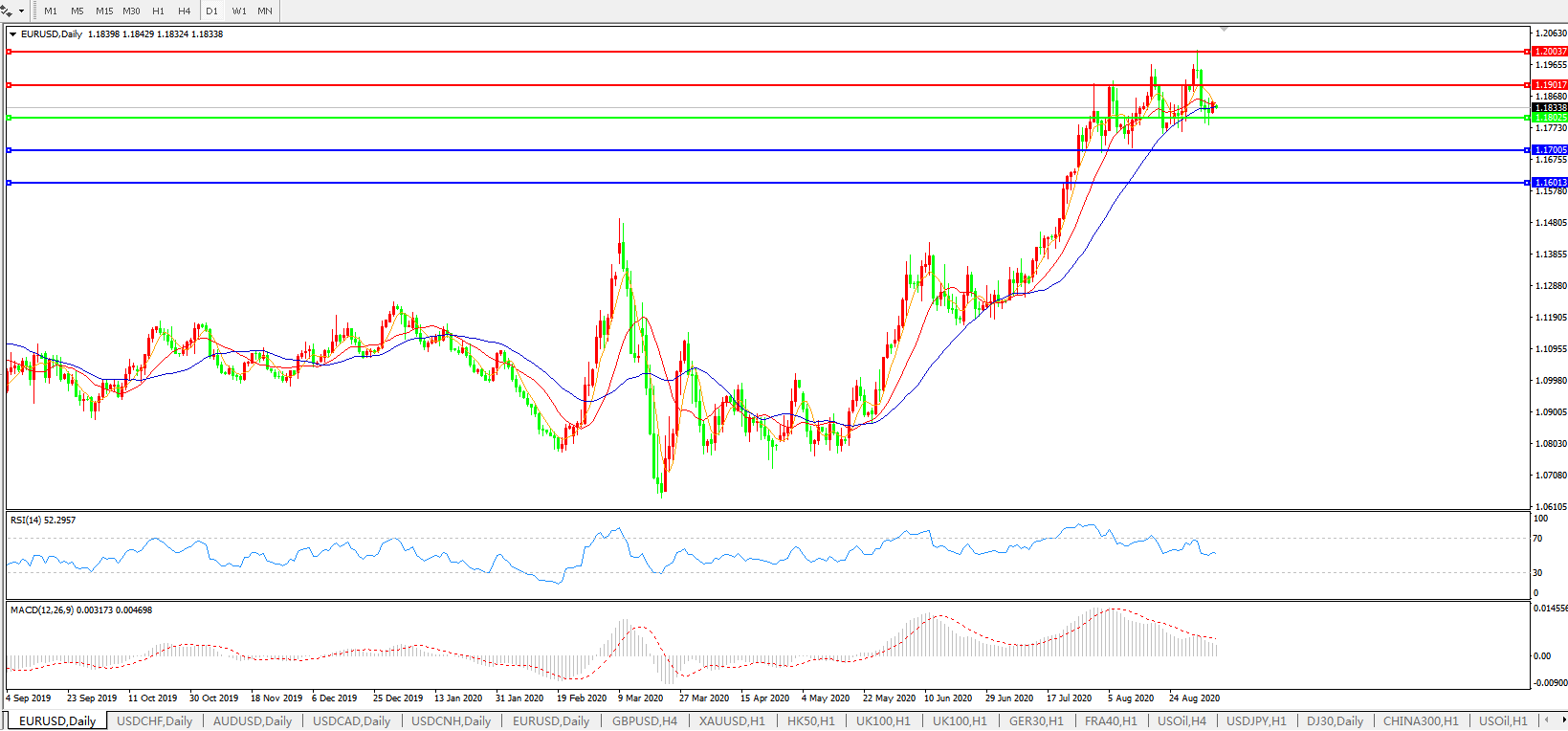 交易策略:1.1800上方看涨,目标1.1900、1.2000