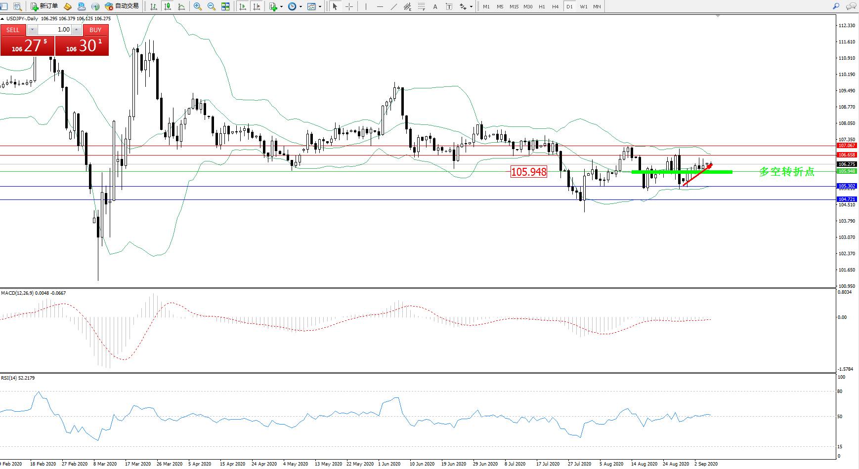 多空转折点:105.948