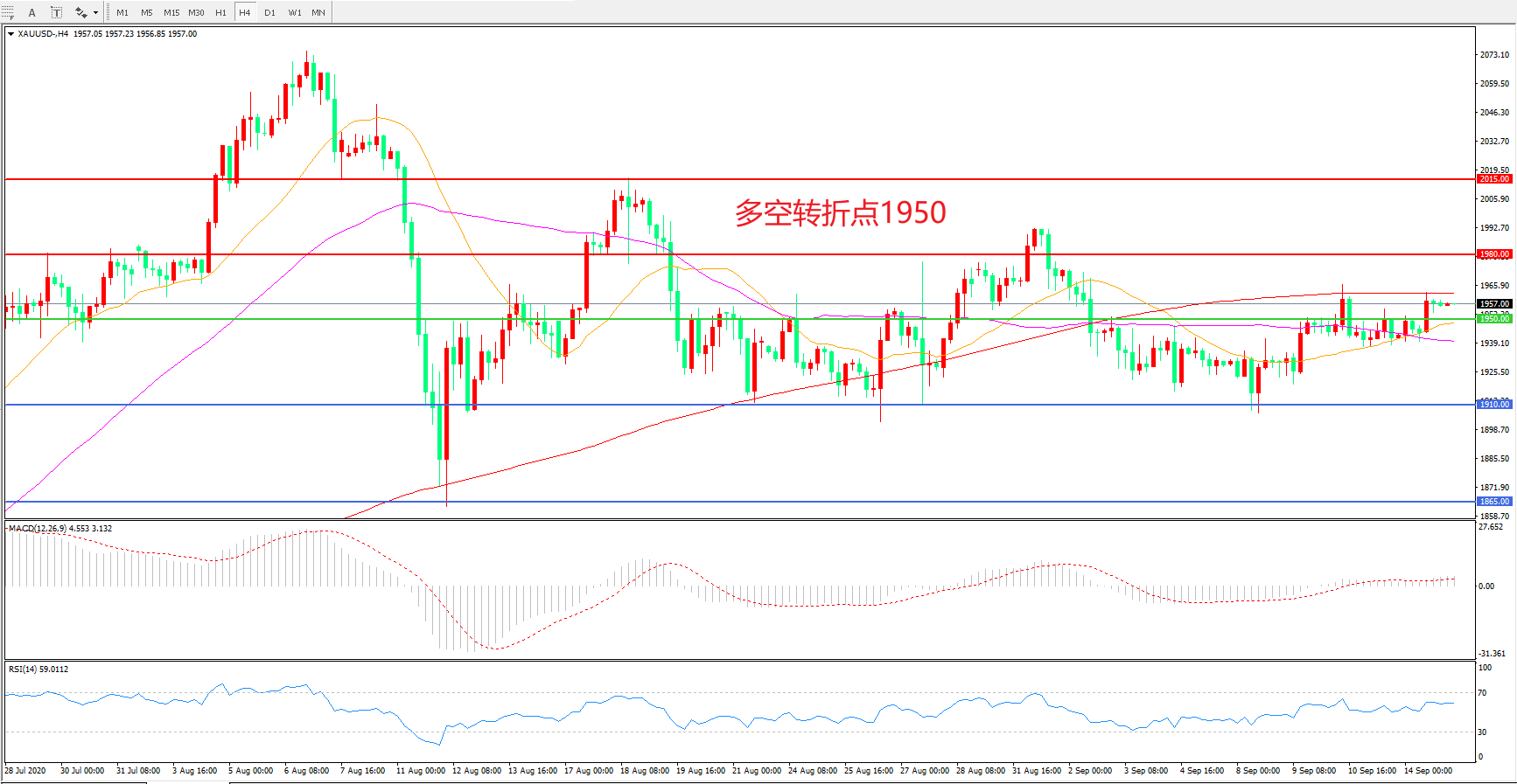 自美联储主席鲍威尔在杰克逊霍尔会议的讲话后,美元与黄金就陷入了漫长的区间震荡,而本周的美联储利率决议是宣布了平均通胀2%之后的首次会议,更是大选前唯一一次议息会议,务必重点关注。在此次会议中,美联储将对后续货币政策进行表述,并确定在接下来的时对经济前景的预判,如果美联储在表述上有所收紧,金价可能会再度获得支撑。