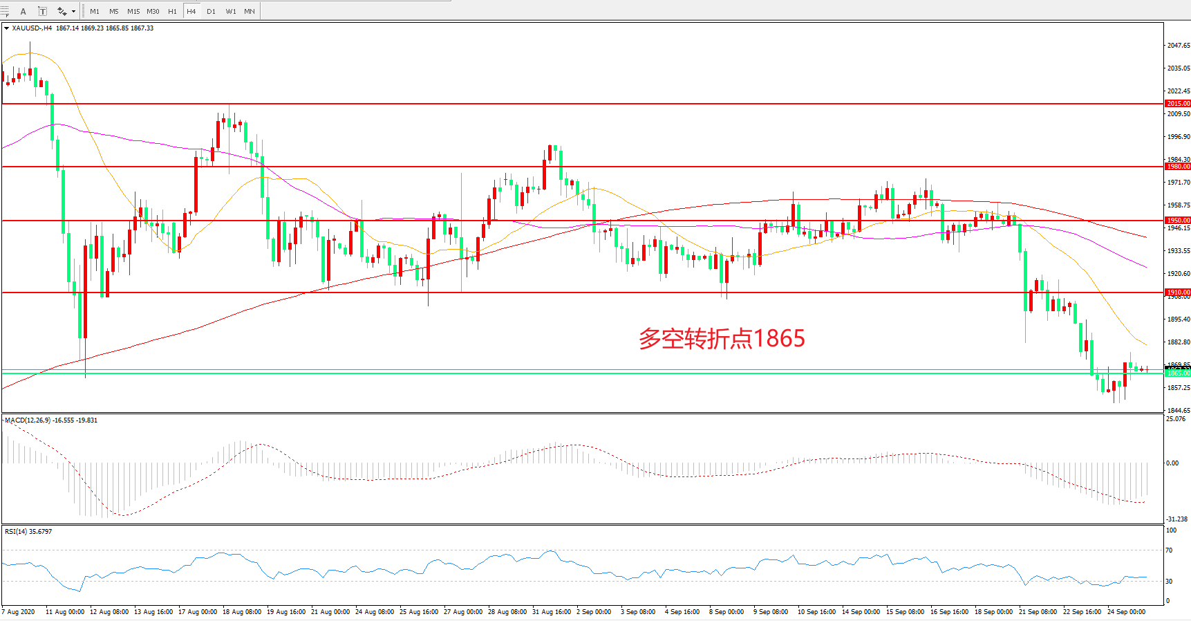 交易策略:在1865.00之下看跌,目标1835.00 1800.00