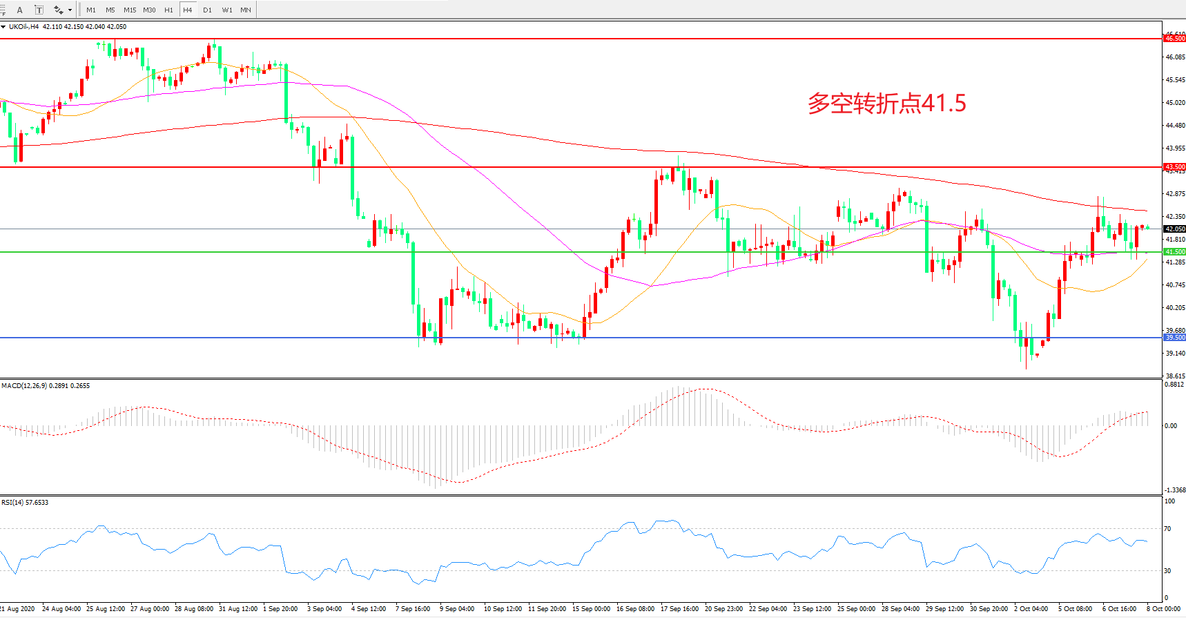 交易策略: 在41.50之上看涨,目标43.50 46.50