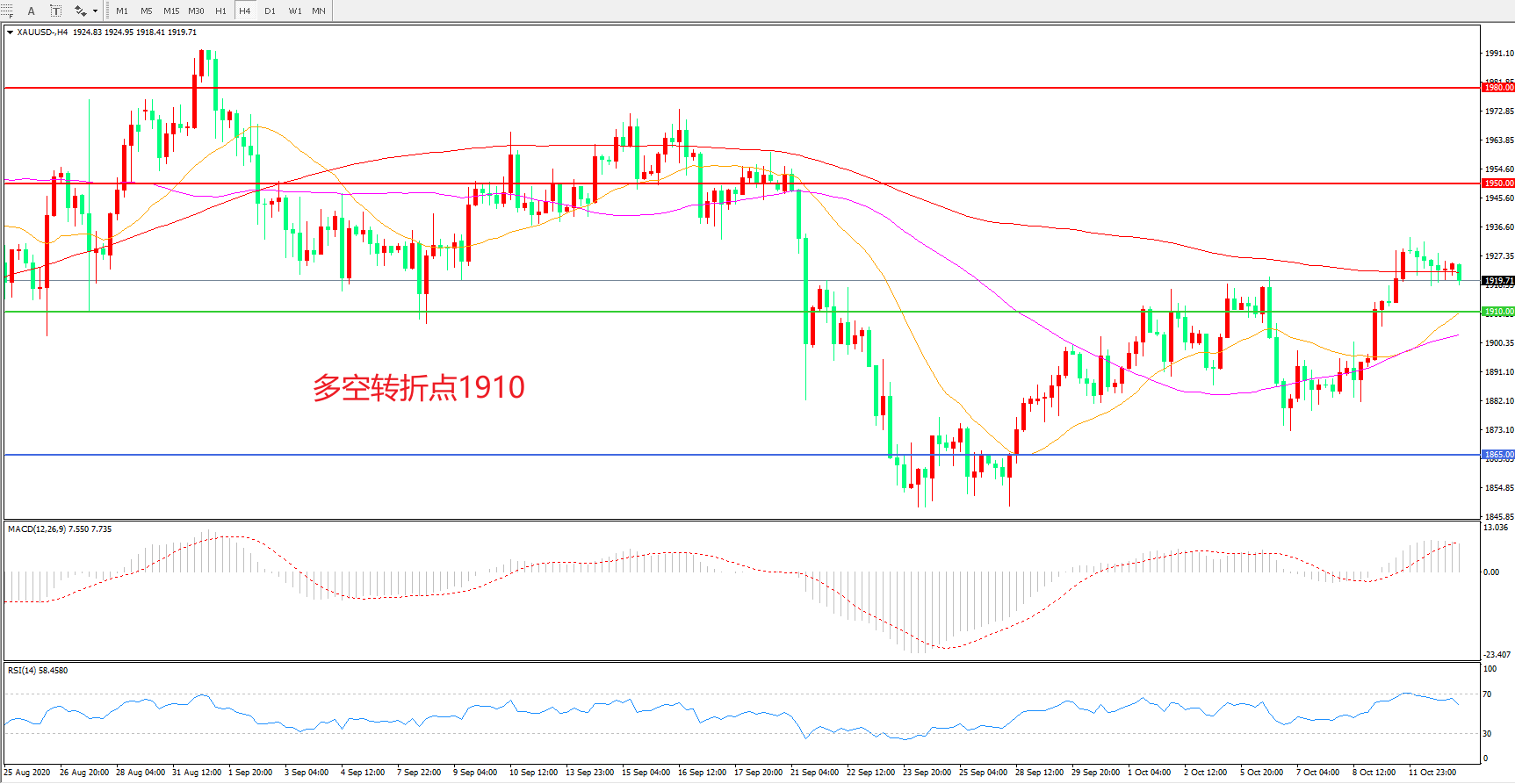 交易策略:在1910.00之上看涨,目标1950.00   1980.00