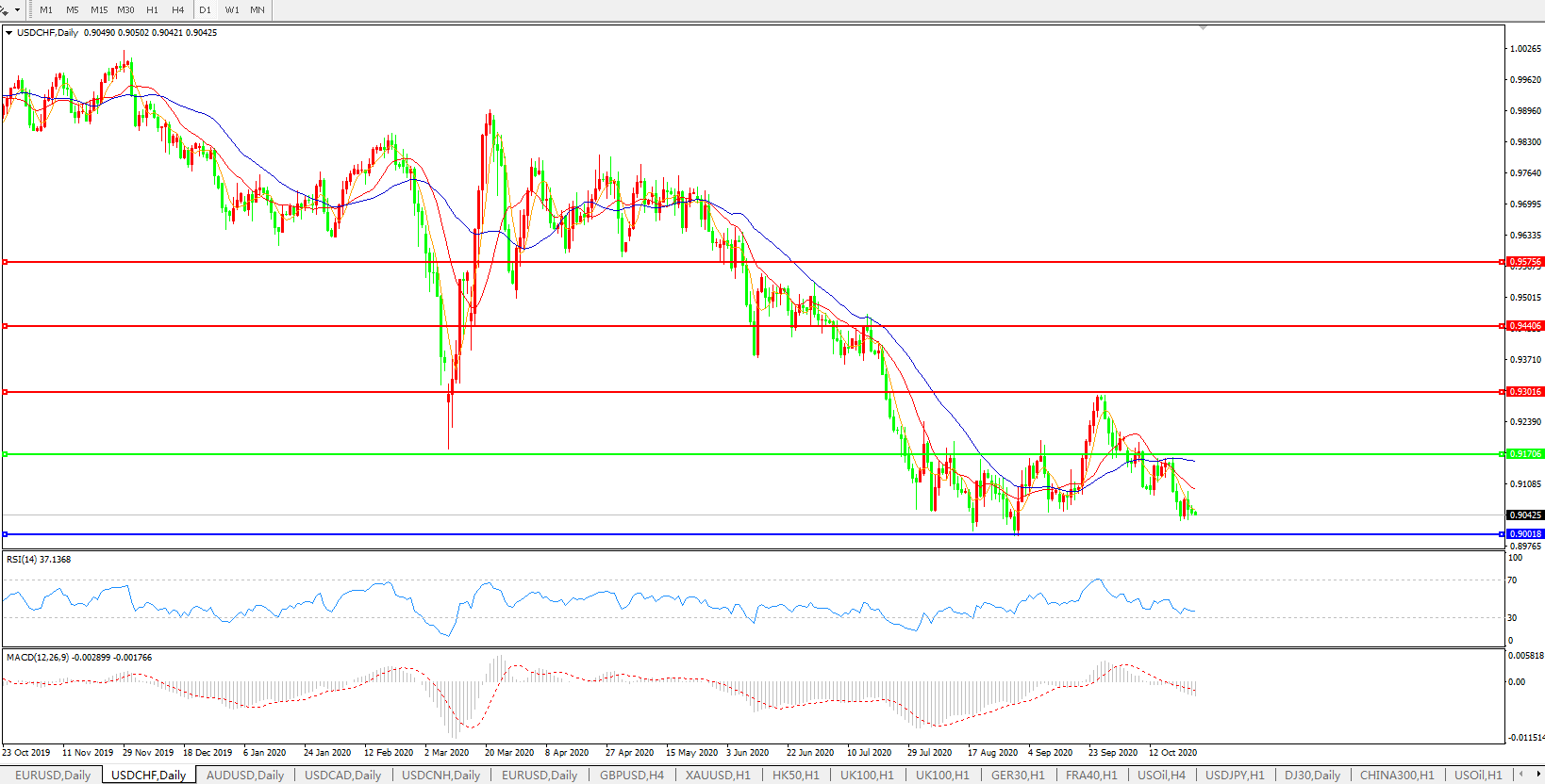 技术面简析:日线图均线呈下行态势,汇价持续弱势下行,MACD运行于0轴下方且量能0轴下继续放量,RSI反弹后持续走弱,预计短期汇价大概率将进一步下行。