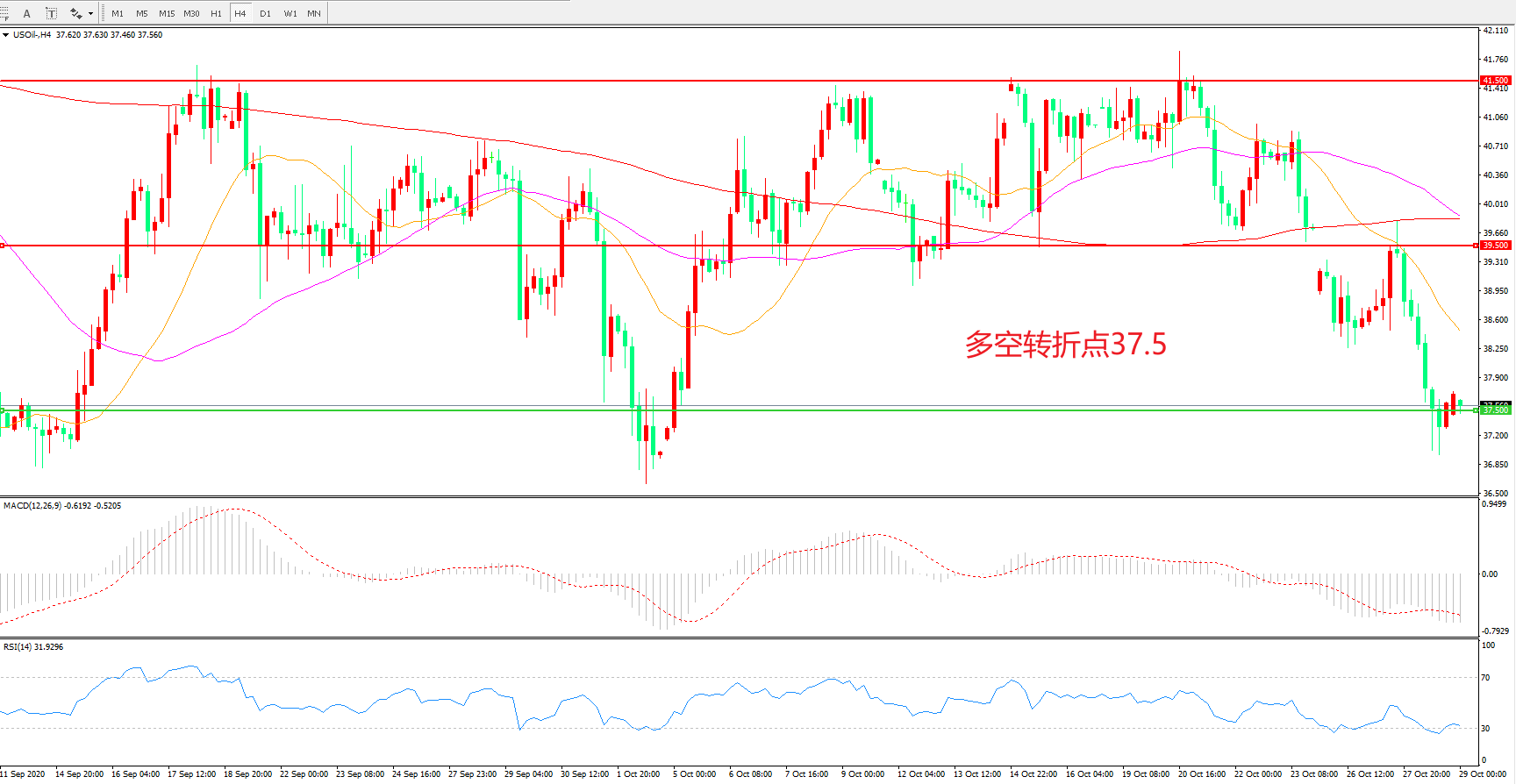 多空转折点:37.50
