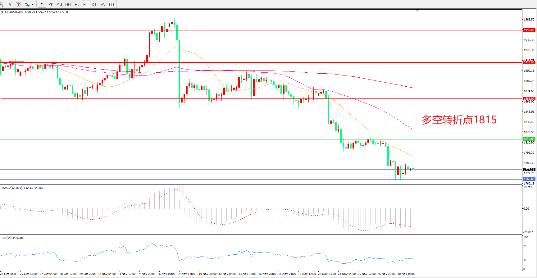 备选策略:在1815.00之下看跌,目标1765.00 1705.00