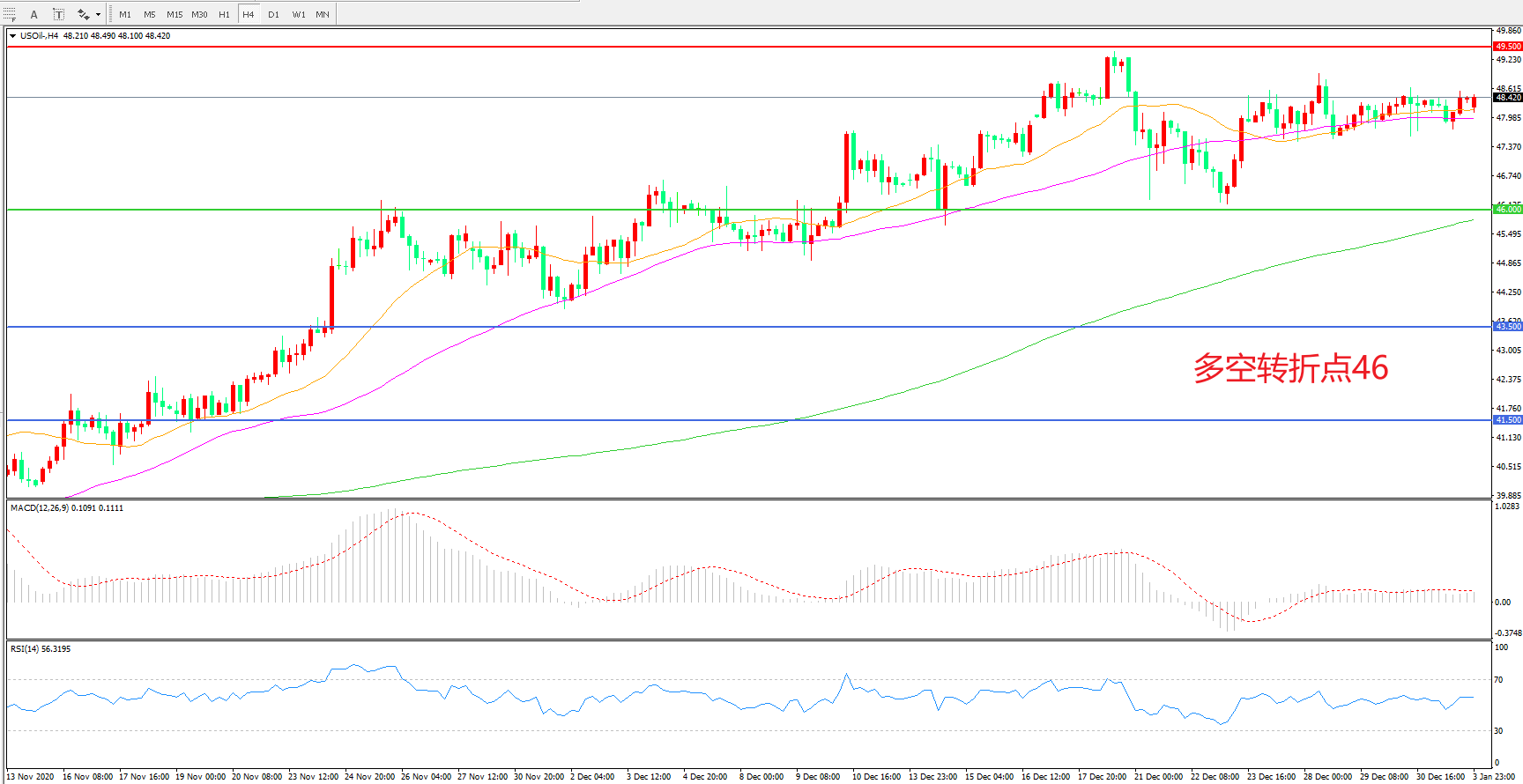 多空转折点:46.00
