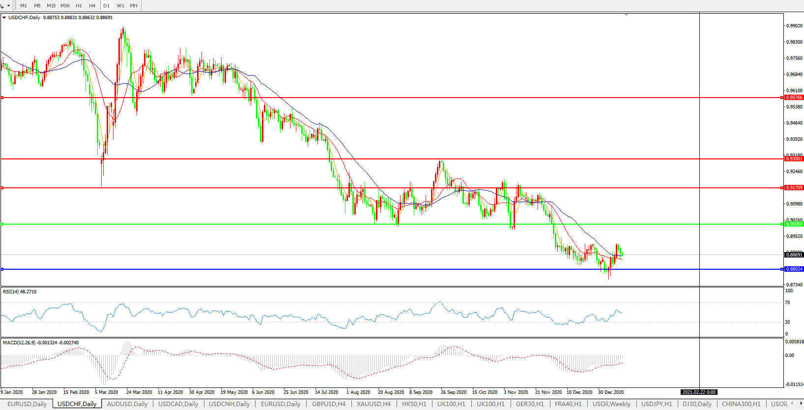 美元兑瑞郎USDCHF    日线图: