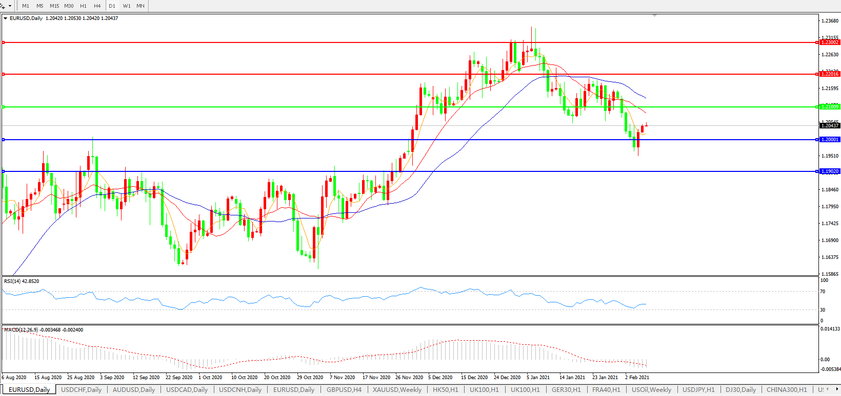 欧元兑美元EURUSD   日线图: