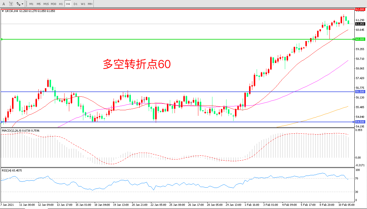 周三(2月10日),美国能源信息署公布数据显示,当周EIA原油库存减少664.5万桶,大幅低于预期,布伦特原油延续近期强势表现,高位震荡后收报61.05美元/桶。与此同时,市场预计美国政府将顺利出台新一轮的大规模刺激计划,从而推动油价延续2月初开始的连续上涨势头。