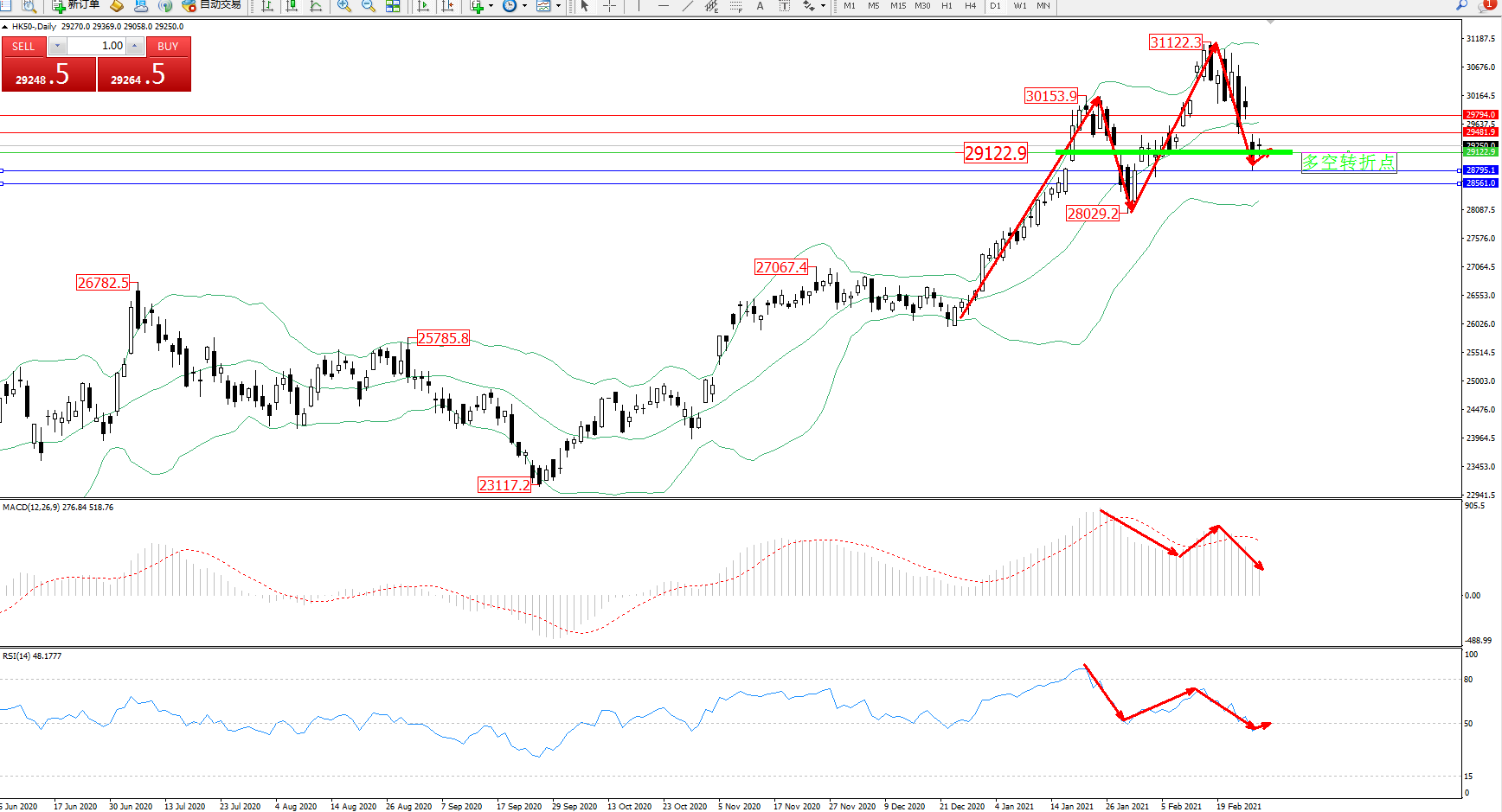 恒指HK50 ——日K线图显示: