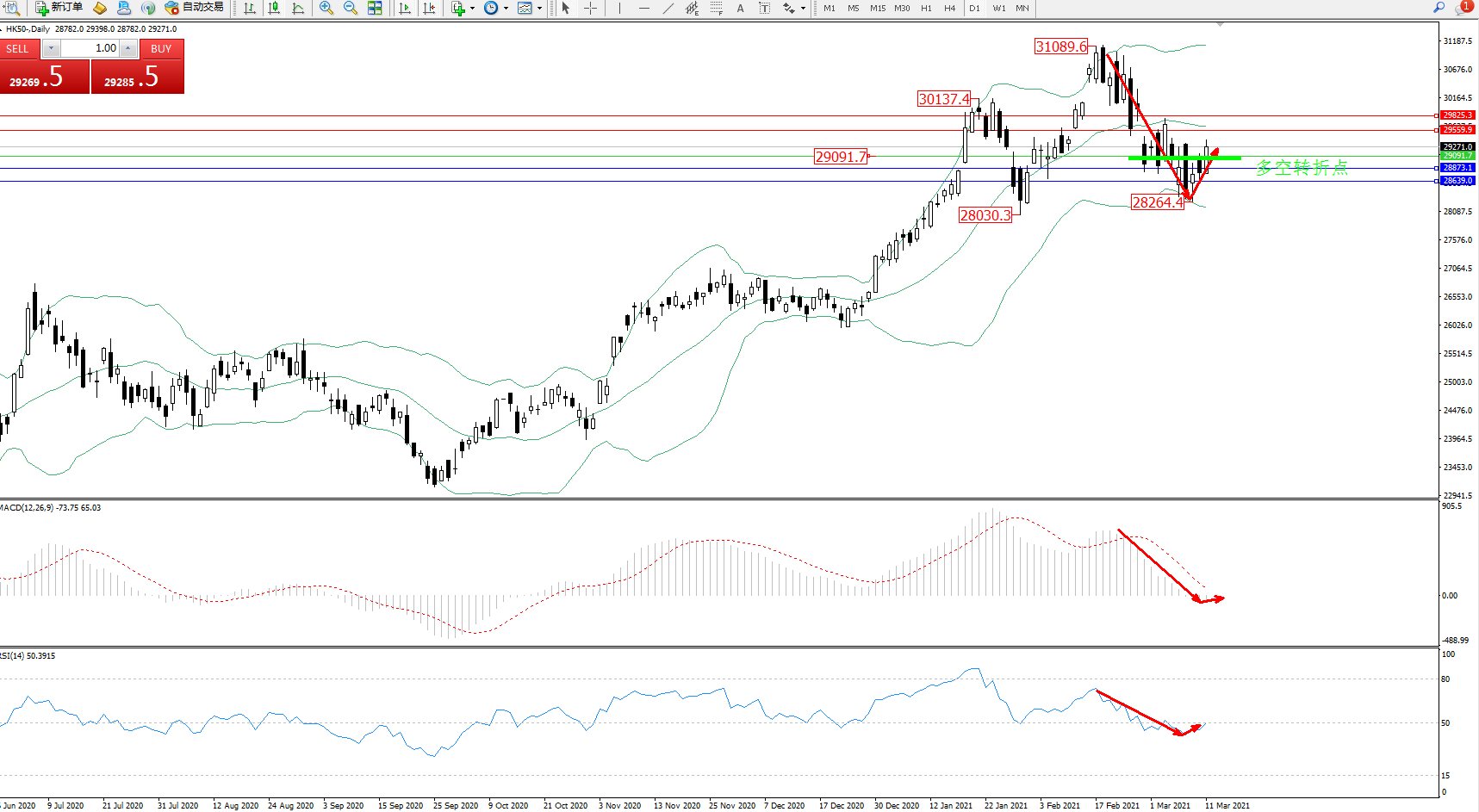恒指HK50 ——日K线图显示: