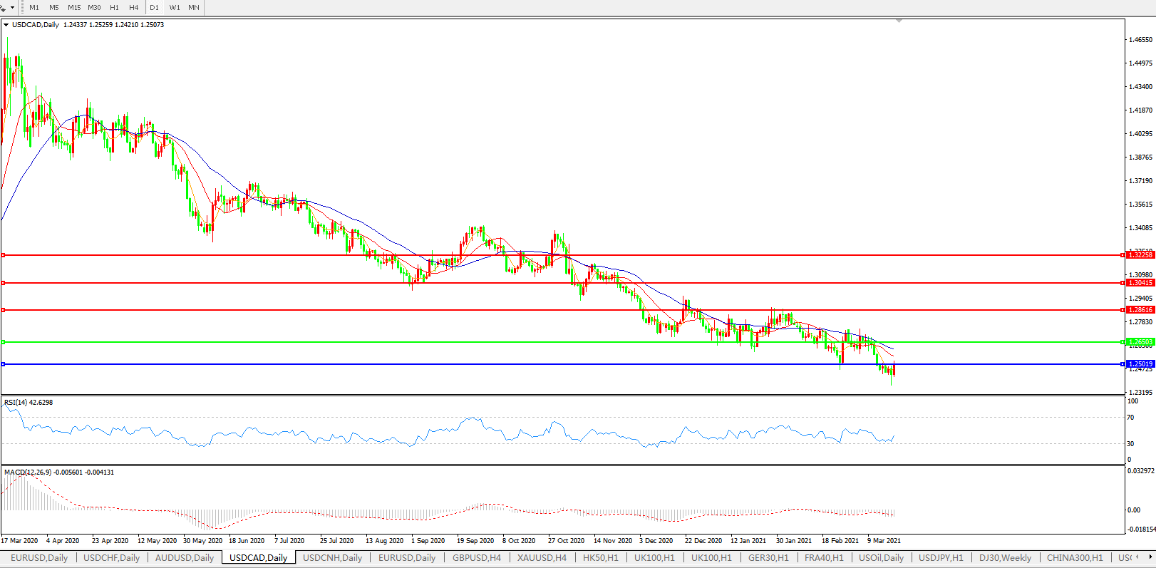 美元兑加元USDCAD    日线图: