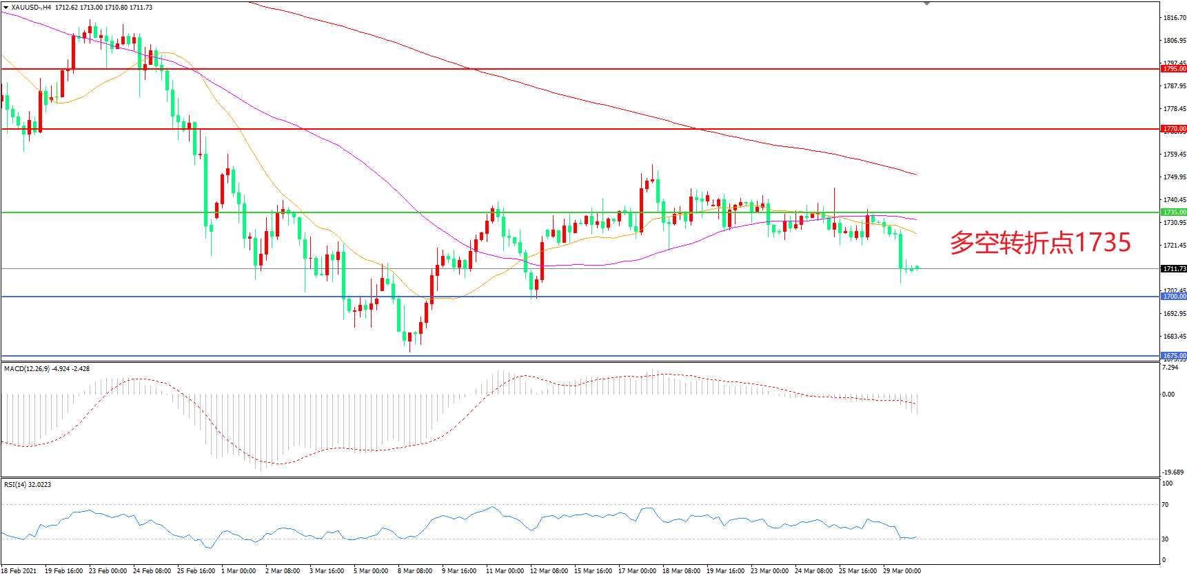 交易策略:在1735.00之下看跌,目标1700.00    1675.00