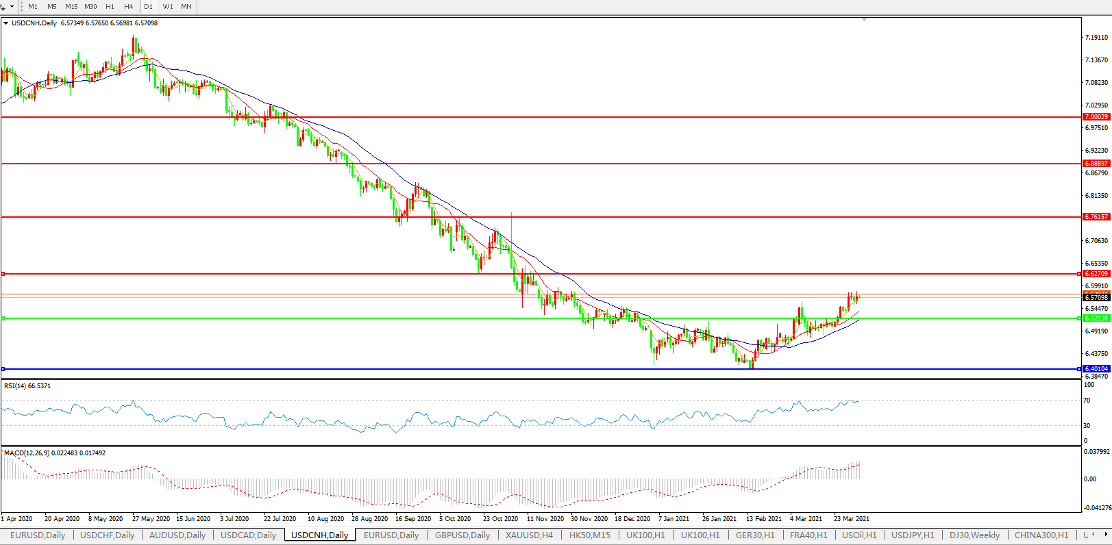 交易策略: 在6.5200之上,看涨,目标价位为6.6300,然后为6.7615。