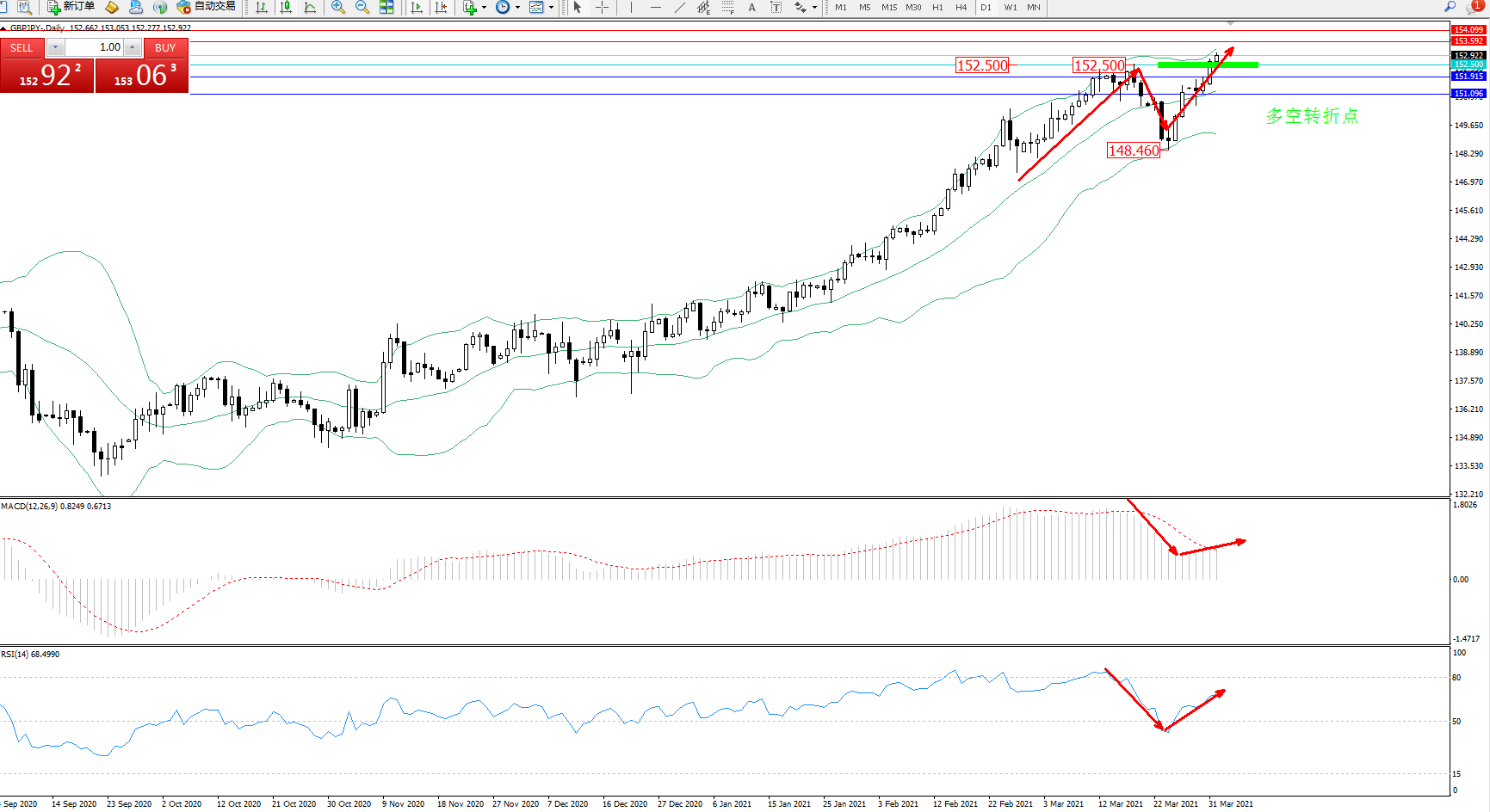 技术点评:多头动力延续布林带指标通道中上轨区间持续震荡上扬,高位抵达152.561位置后遇阻回撤,触及下轨148.460附近节点后多头动力强势反转上移,再度回升至上轨附近持续拉升中,多头动力有继续向上移动态势,布林带指标呈收口走势后开始缓慢平移中,MACD指标处于多头区域高位回撤后开始徘徊,RSI指标处于多头区域高位急速下挫后反转平缓上移;