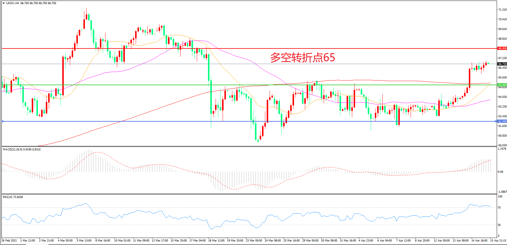 周四(4月15日),美国3月份零售销售数据表现靓丽,大幅好于市场预期,同时公布的上周初请失业金数据也创造了13个月以来的新低。在疫苗的普及以及美国新增确认人数不断下滑的情况下,市场对于未来需求越来越有信心,布伦特原油延续强势表现,大幅上行后收报66.75美元/桶。不过在疫苗的问题上,阿斯利康疫苗最近问题频频,后续疫苗接种的表现值得市场投资者关注。