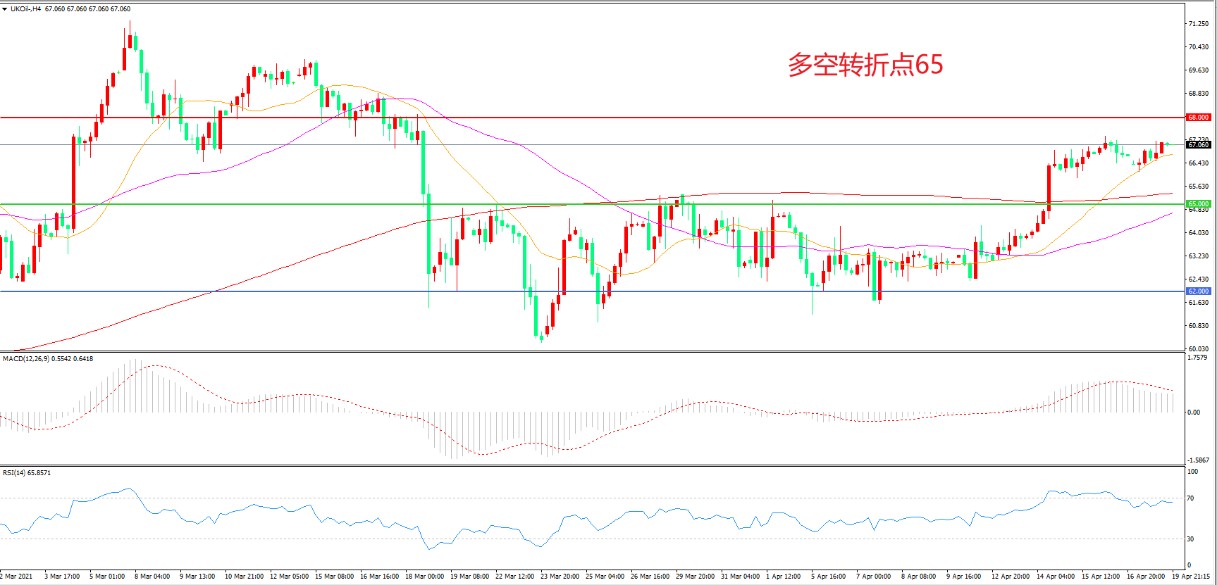 交易策略:在65.00之上看涨,目标68.00 72.00