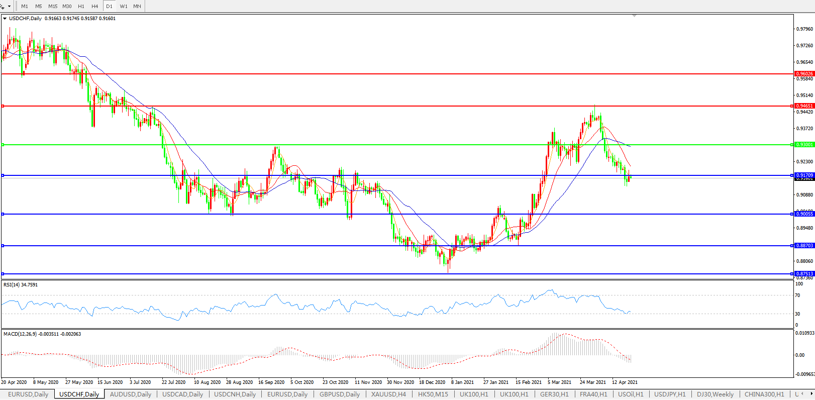 美元兑瑞郎USDCHF    日线图: