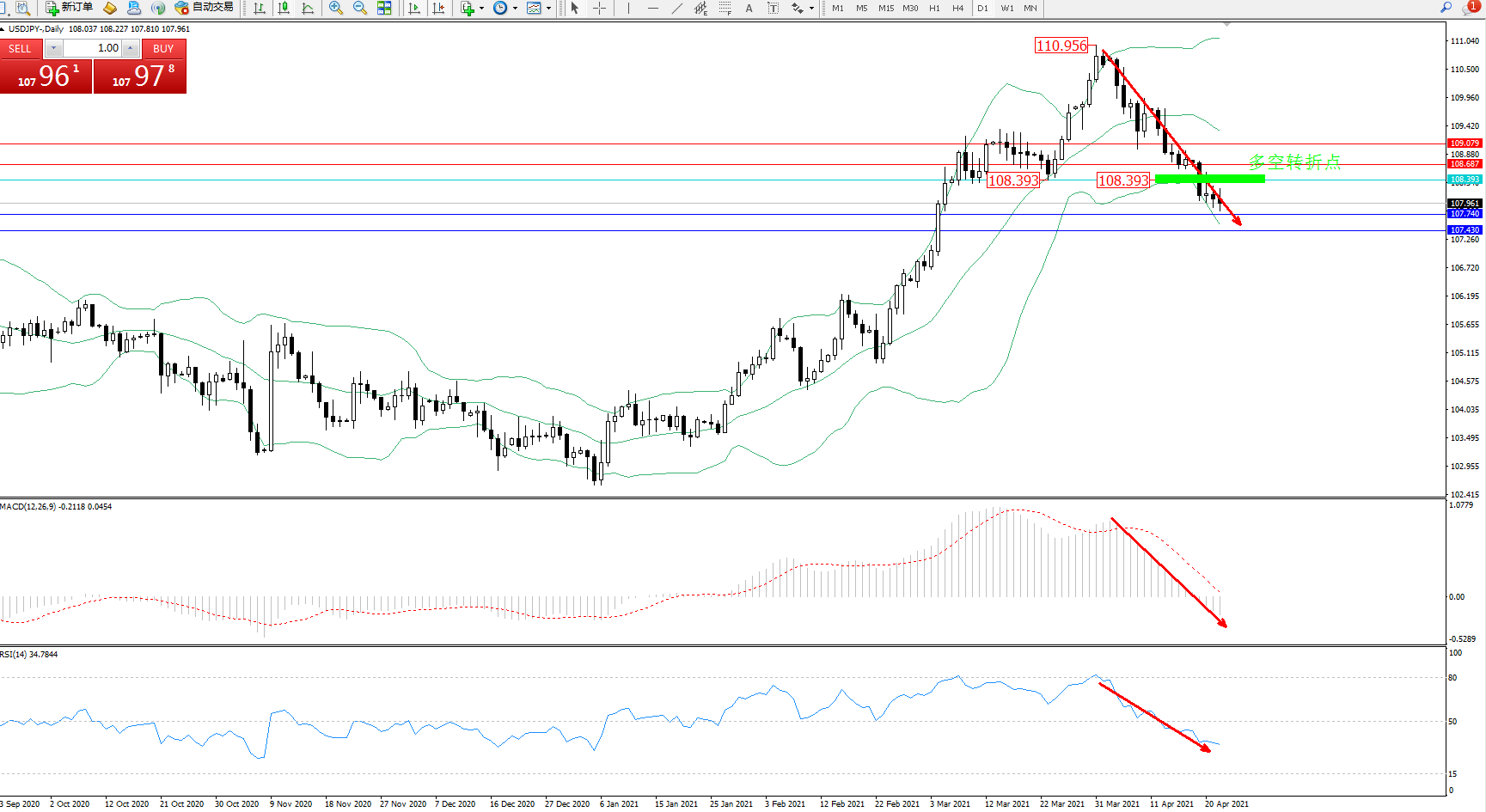 技术点评:高位空头动力延续空头下行走势持续下挫,触及布林带指标下轨附近节点后不断向下移动,空头动力下行态势良好,跌势未见止步迹象,布林带指标呈收口平移走势后开始缓慢张口,关注下轨附近节点,MACD指标高位空头动力持续下挫至0轴线附近节点,RSI指标高位空头动力跌势下行至50均衡线下方维持向下移动中;