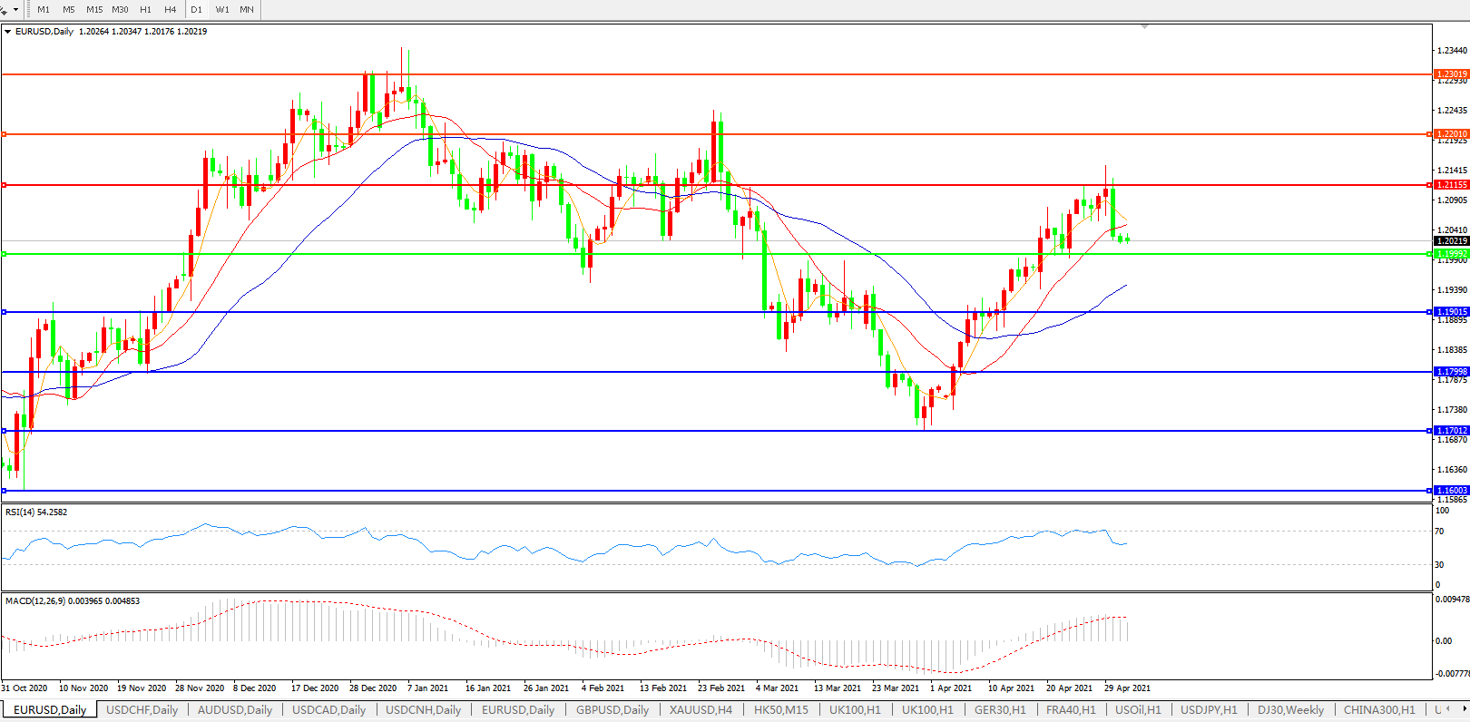 备选策略:1.2000下方看跌,目标1.1900、1.1800