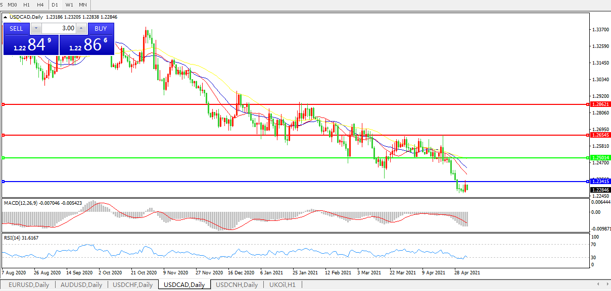 美元兑加元USDCAD    日线图:
