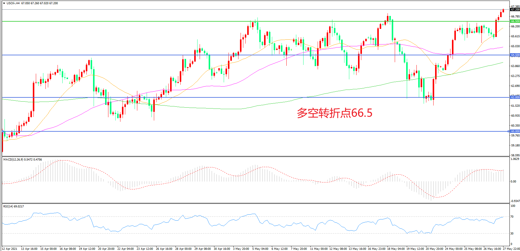 交易策略:在66.50之上看涨,目标69.00    72.00
