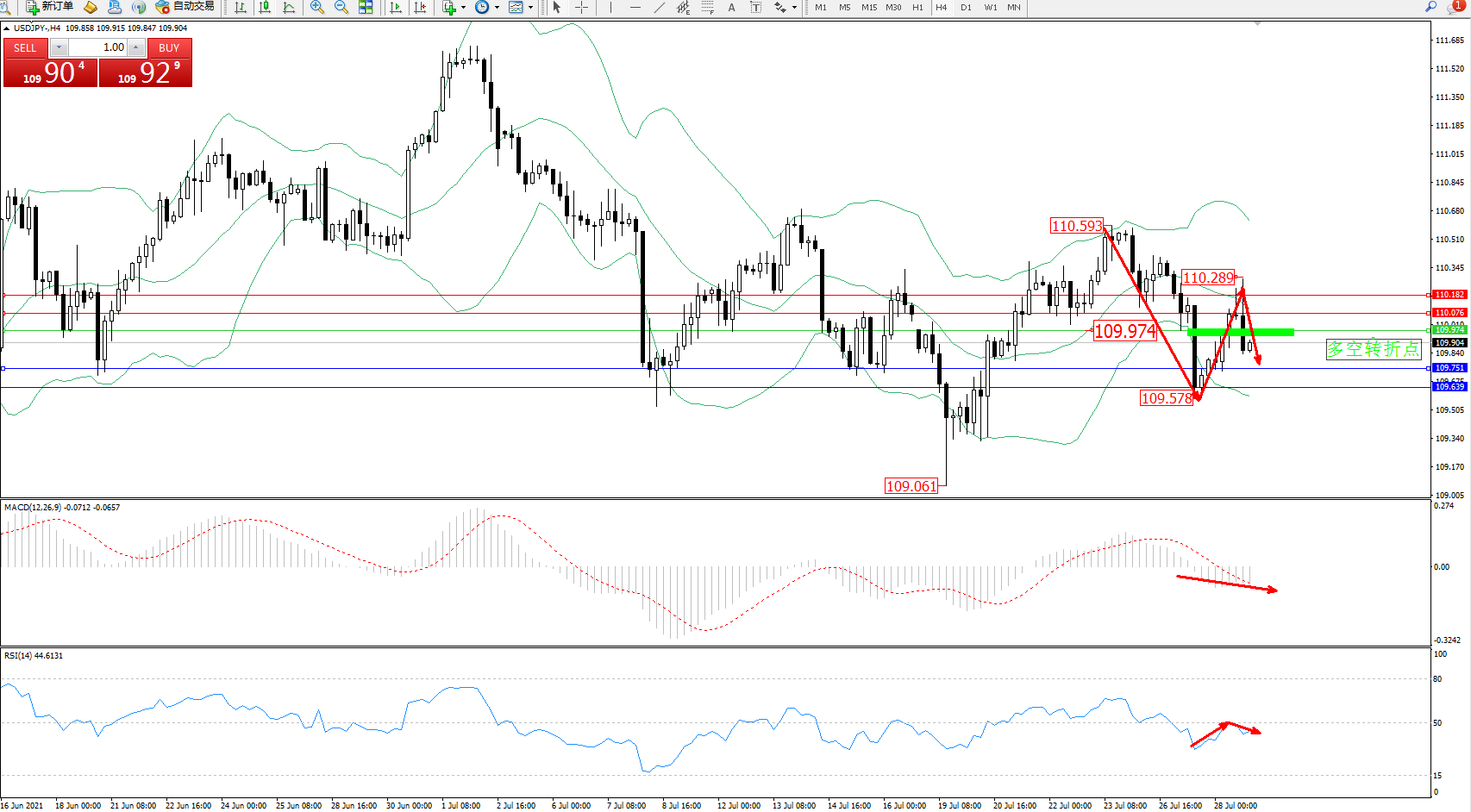 交易策略:109.974下方看跌,目标109.751、109.639