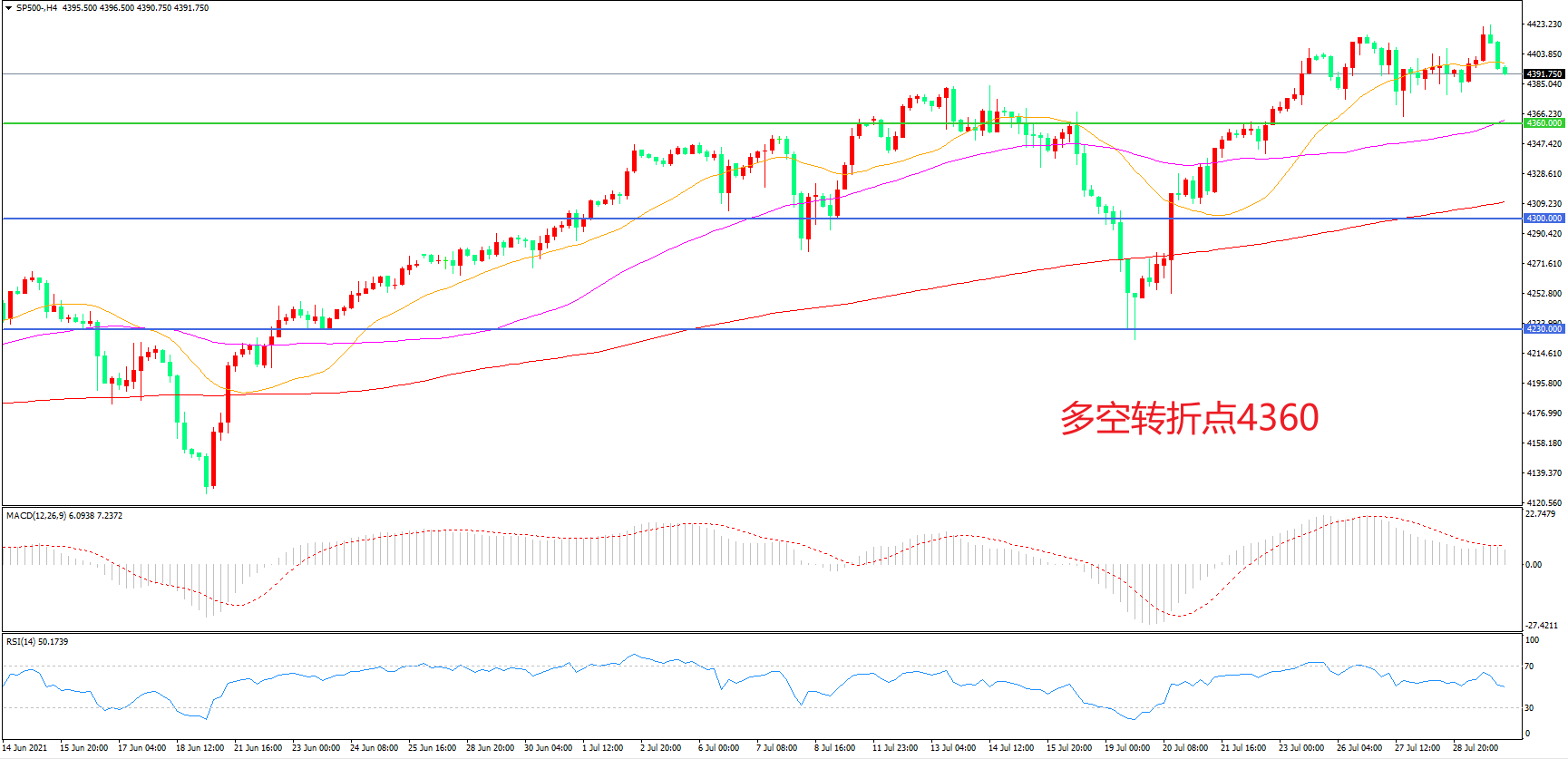 多空转折点:4360.00