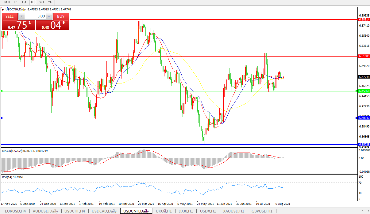 备选策略:在6.4505之下,看跌,目标价位为6.4000,然后为6.3500。