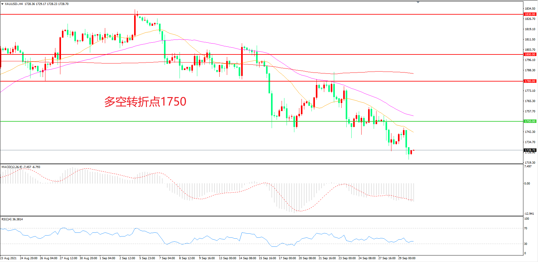 交易策略:在1750.00之下看跌,目标1720.00 1700.00