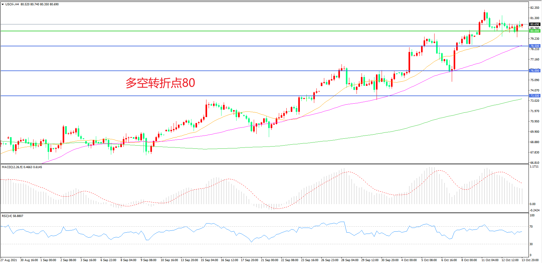 多空转折点:80.00