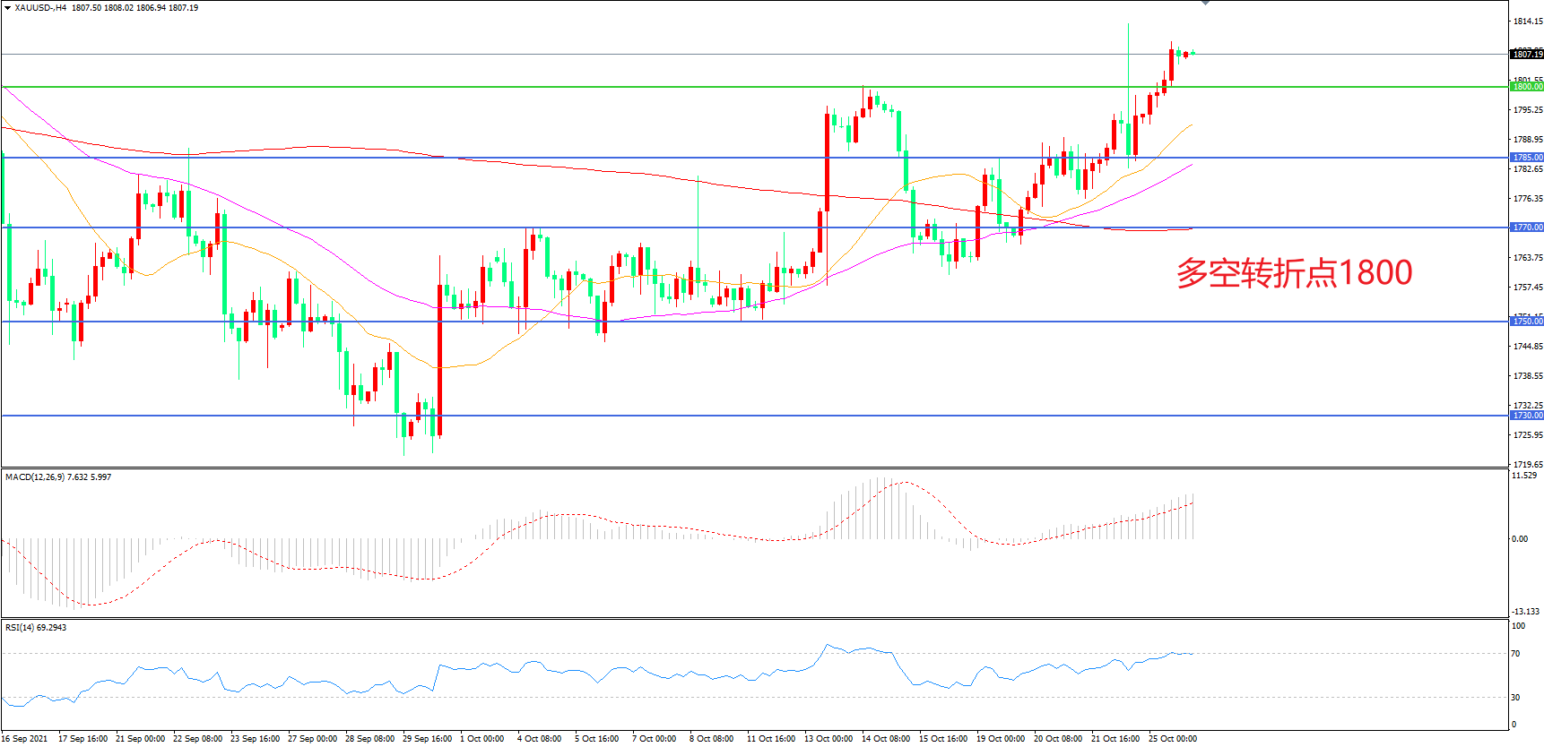 交易策略:在1800.00之上看涨,目标1830.00       1845.00