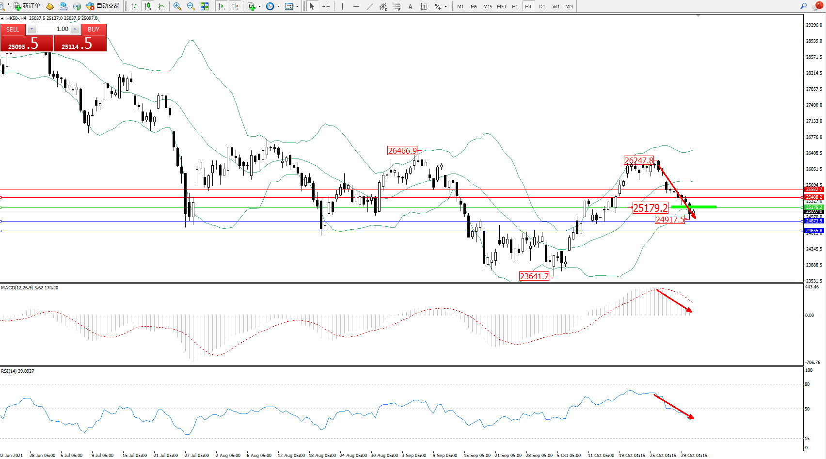 香港恒生指数11月1日(周一)收盘下跌222.92点,跌幅0.88%,报25154.32点;港股三大指数全天维持下跌行情,权重科技股及热门板块表现萎靡。恒生科技指数跌1.51%报6279点。今日大市成交额为1350亿港元,南下资金净流入3.95亿港元。香港特区政府1日公布,将从11月12日起全面收紧豁免检疫安排,并强化对豁免人士的监管。新措施主要内容包括:取消绝大部分豁免类别人士到港后免检疫的安排;要求外国领馆及机构人员到港后必须在检疫期内于指定检疫酒店接受隔离,不得居家隔离(总领事或同等/较高职级的驻港代表除外)。