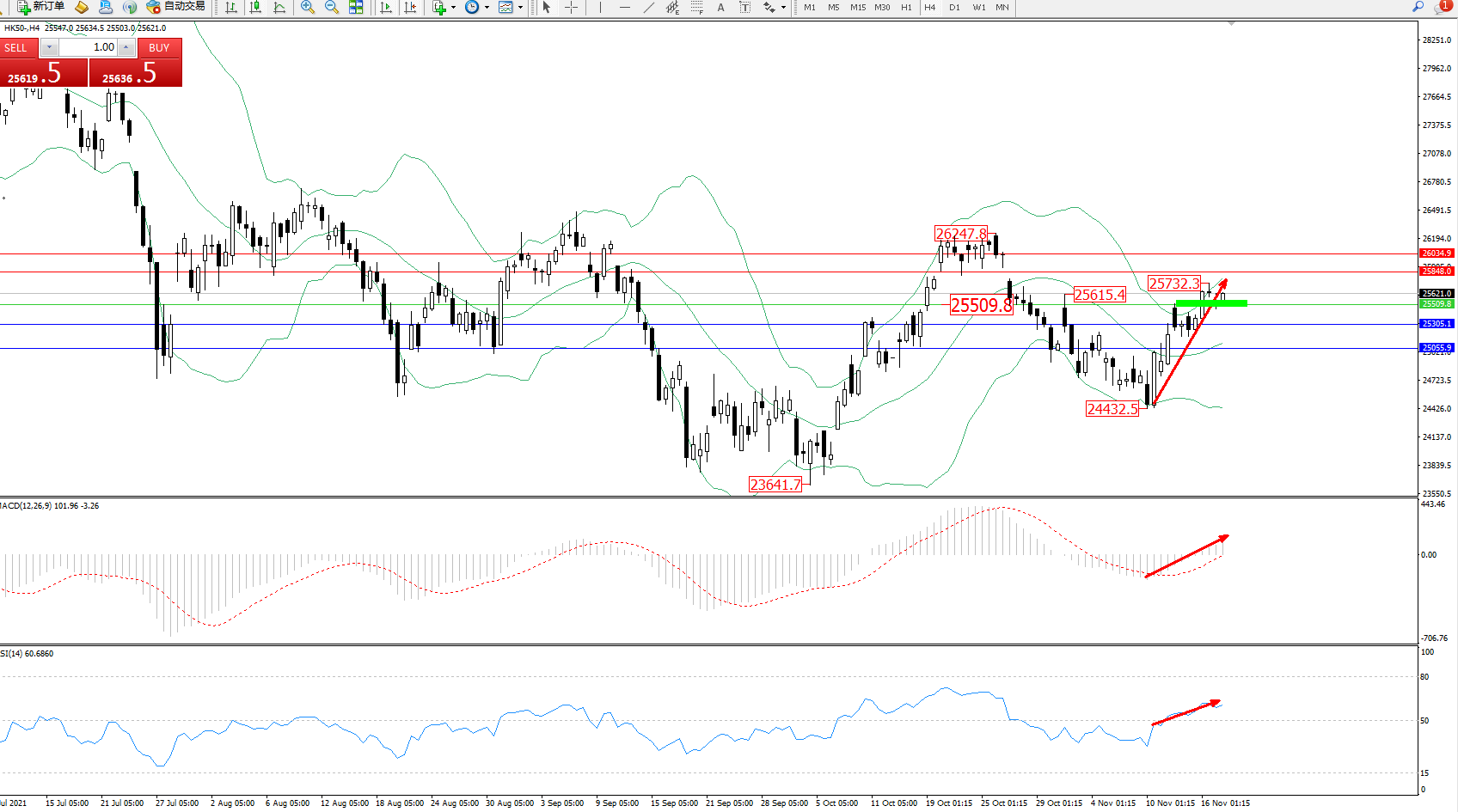 交易策略:25509上方看涨,目标25848、26034