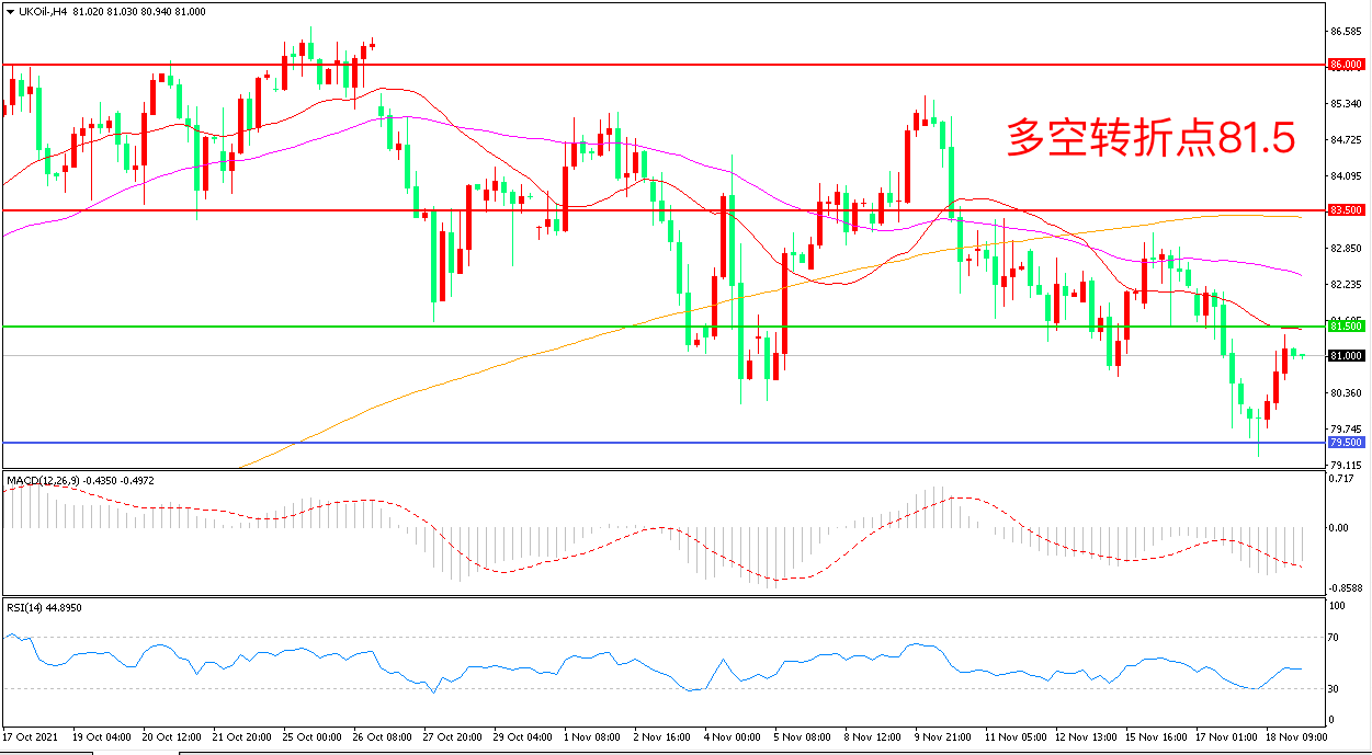 交易策略:在81.50之下看跌,目标79.50                 77.00