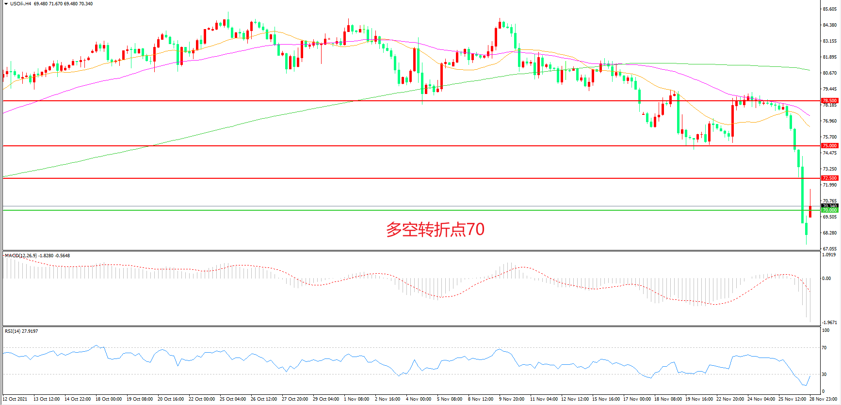 上周五(11月26日),对疫情的担忧重新主宰市场,在世界卫生组织宣布南非又有新的变异株出现后,美国WTI原油大幅下跌后收报68.15美元/桶。目前还需要时间才能明确变异毒株奥密克戎最终对原油需求会造成多大破坏,但油市面临供需局面恶化这一基调是当下现实,OPEC+本周会议能否达成足够有影响力的决议对油价来说非常关键,短期来看油价大概率还是要继续向下寻求支撑。