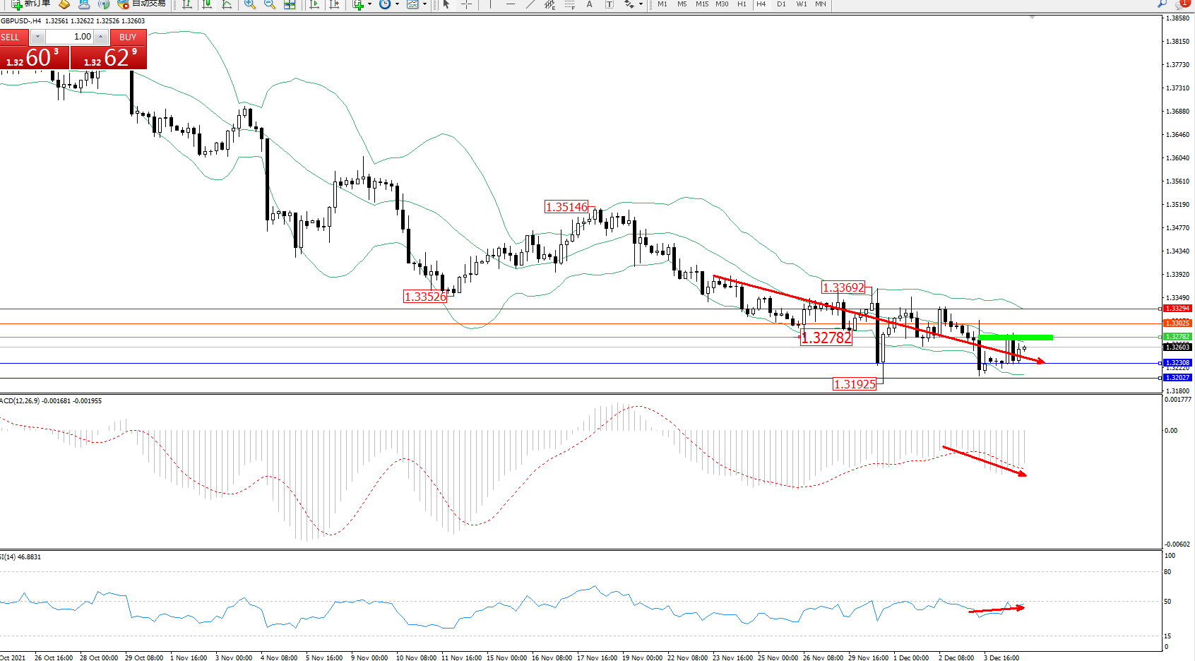 交易策略:1.32782下方看跌,目标1.32308、1.32027