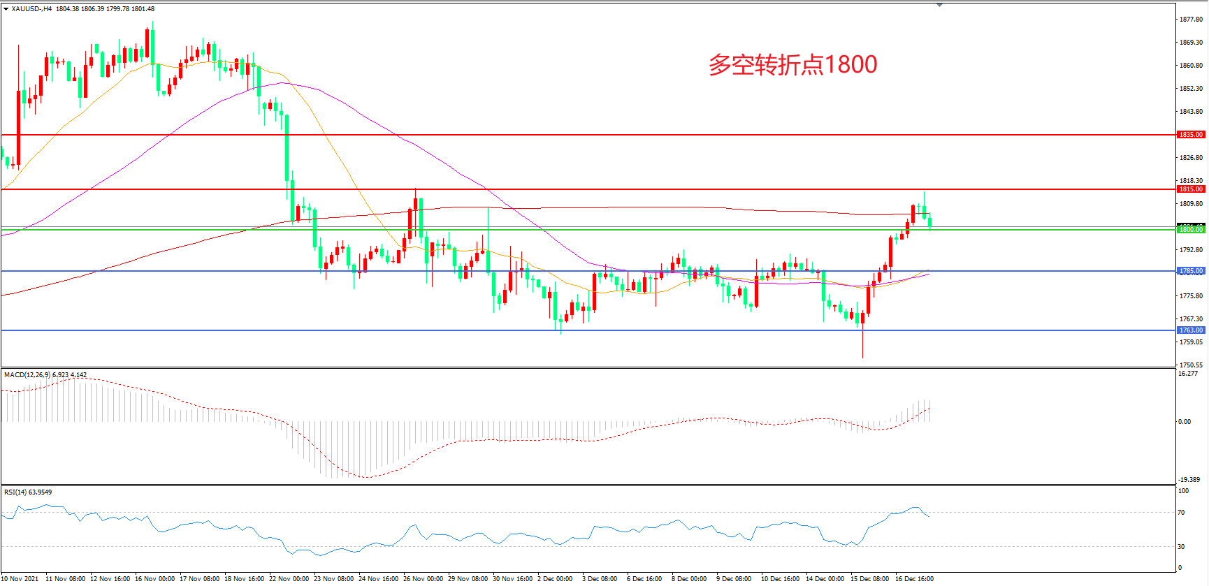 交易策略:在1800.00之上看涨,目标1815.00 1835.00