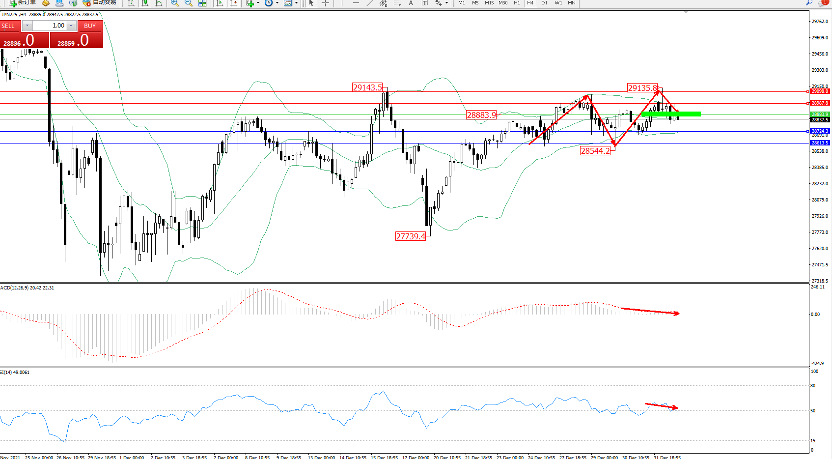 日经225指数1230日(周四)收盘下跌95.88点,跌幅0.33%,报28811.00点。日经225指数在2021年上涨4.9%,至28791.71点,创1989年以来的最高年终收盘水平。奥密克戎变异株的较小影响仍然支撑着潜在的看涨情绪。看涨情绪在股市普遍乐观的基调中表现明显。
