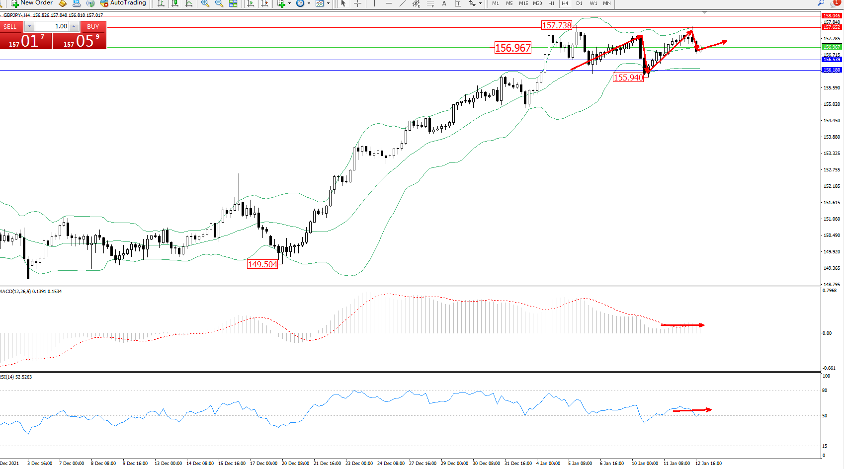 交易策略:156.967上方看涨,目标157.652、158.046
