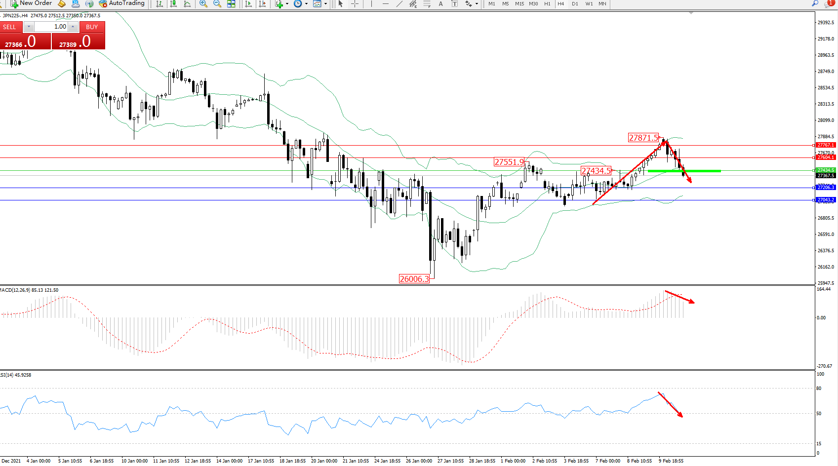 技术点评:多头动力延续布林带指标通道中上轨区间持续震荡上扬,高位抵达27871附近遇阻回撤,跌破布林带指标中轨附近节点后有继续下行态势,短期空头动力下行或价格能持续,布林带指标呈张口走势后开始收口,MACD指标处于多头区域维持震荡上移后回撤下行,RSI指标处于多头区域维持震荡下行至50均衡线下侧徘徊;