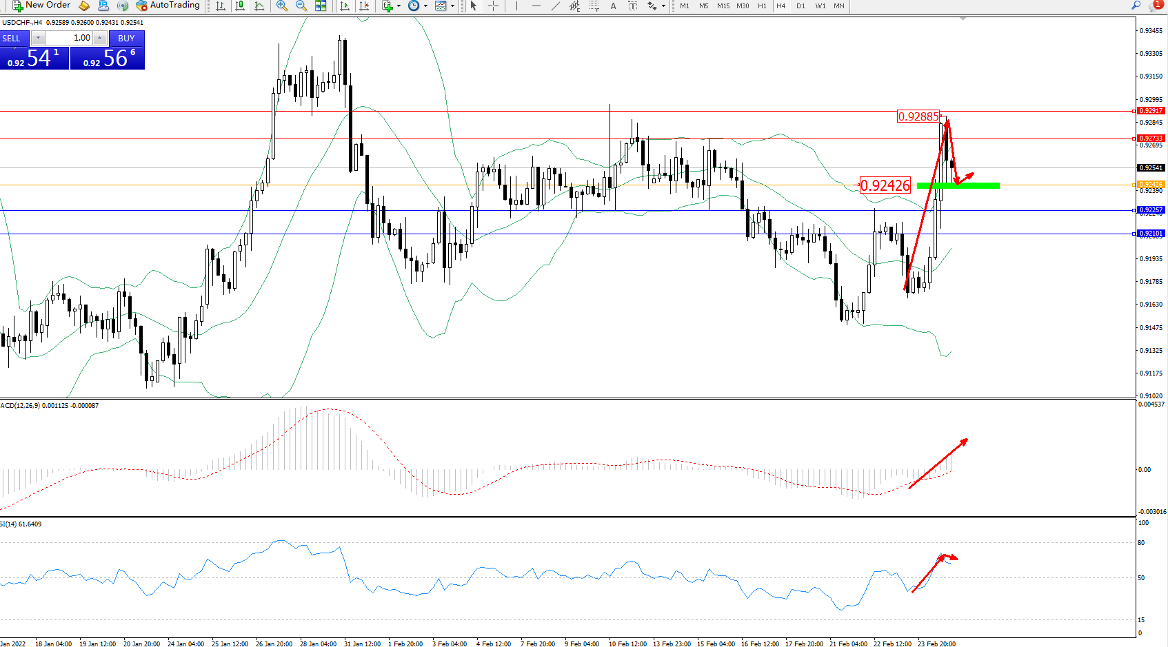 交易策略:0.92426上方看涨,目标0.92733、0.92917