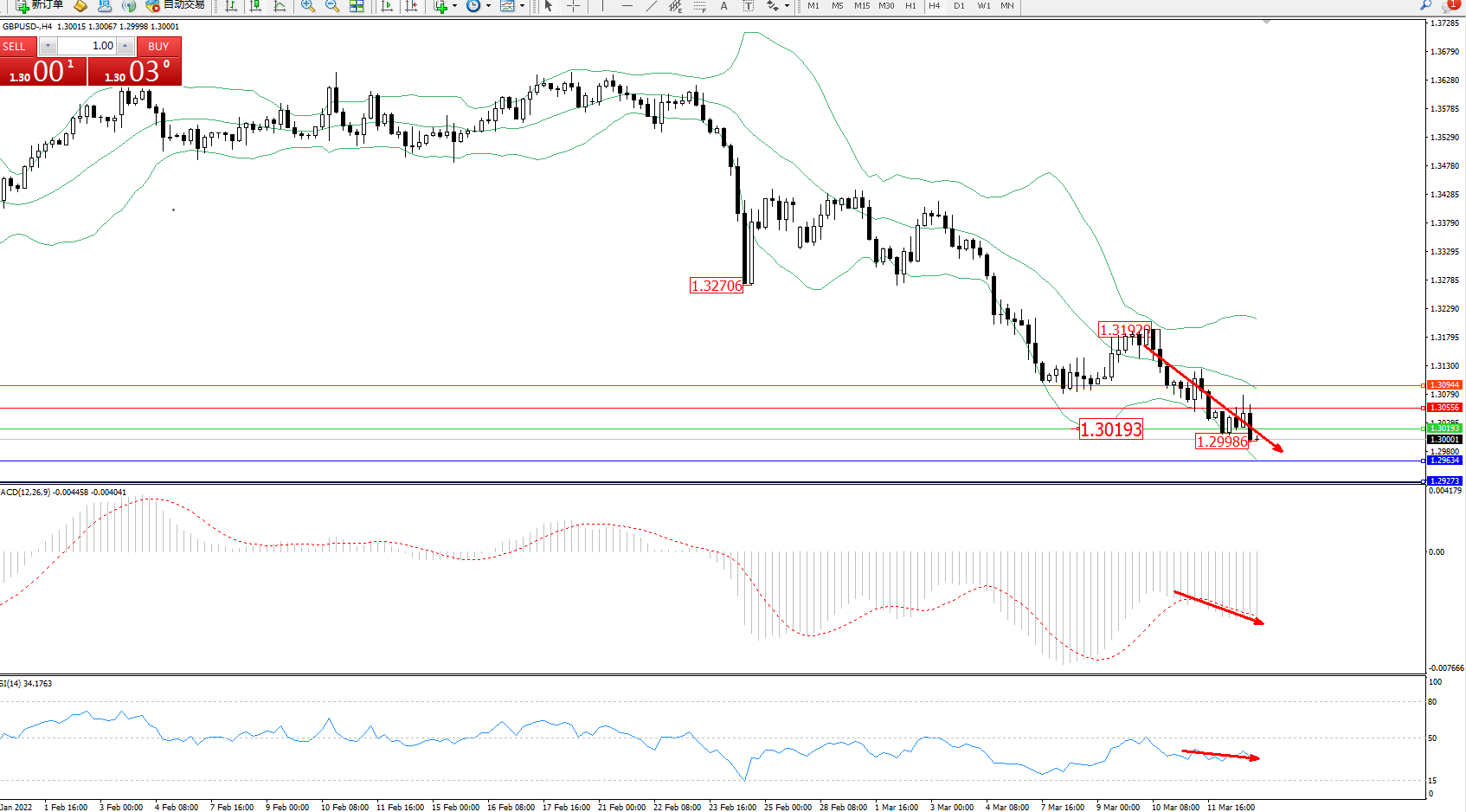 英镑美元GBPUSD ——4小时K线图显示: