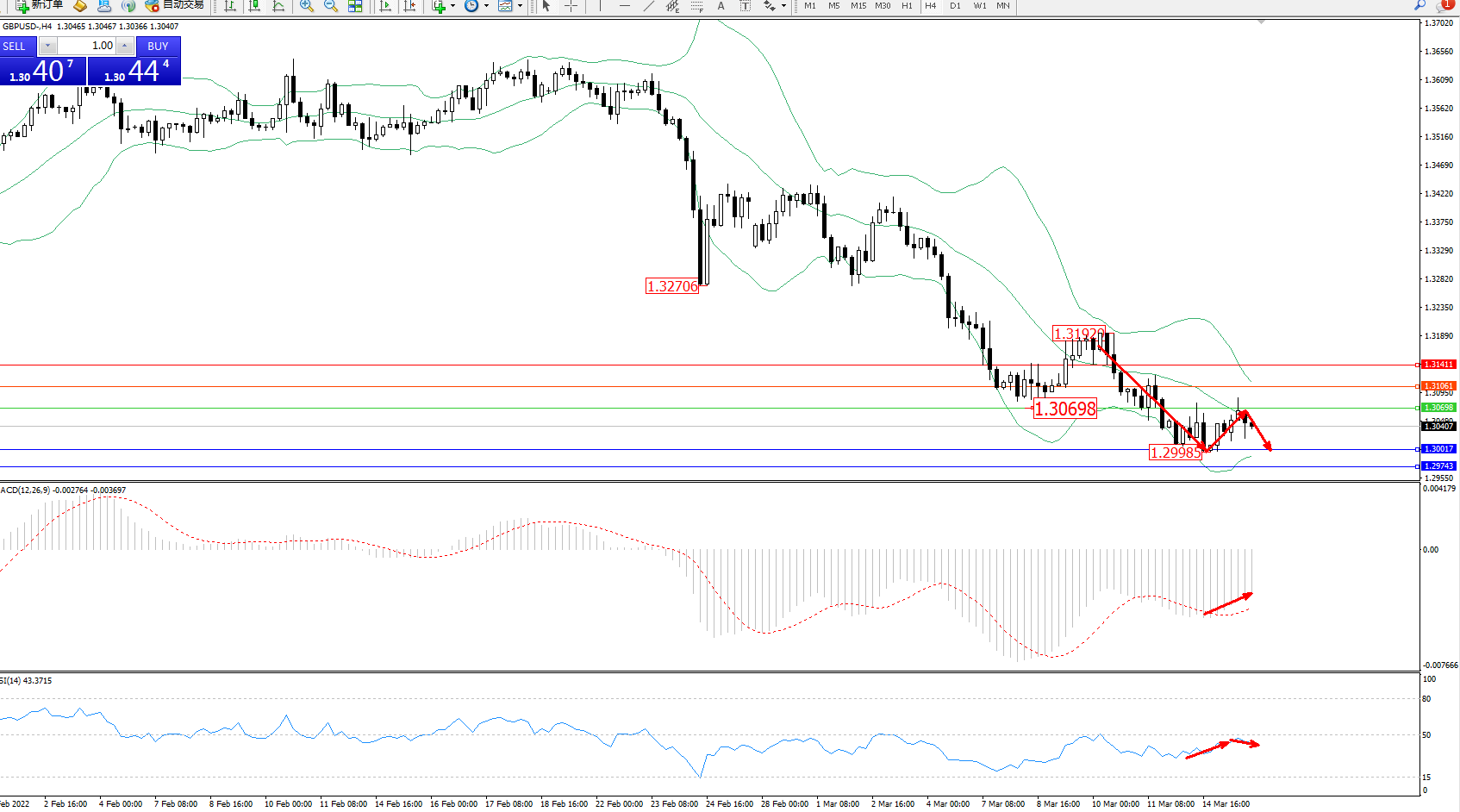 交易策略:1.30698下方看跌,目标1.30017、1.29743