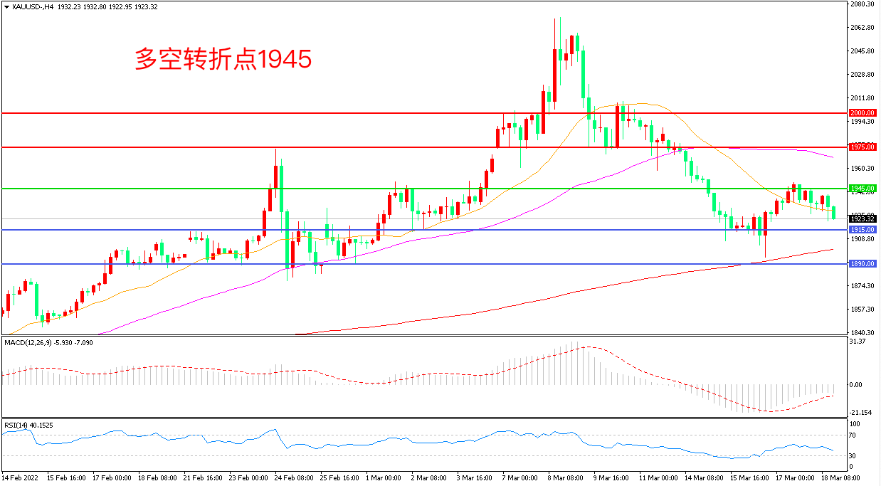 备选策略:在1915.00之下看跌,目标1890.00       1865.00