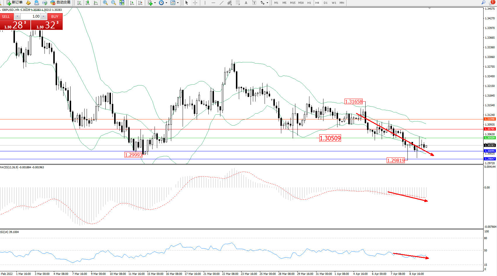英镑美元GBPUSD ——4小时K线图显示: