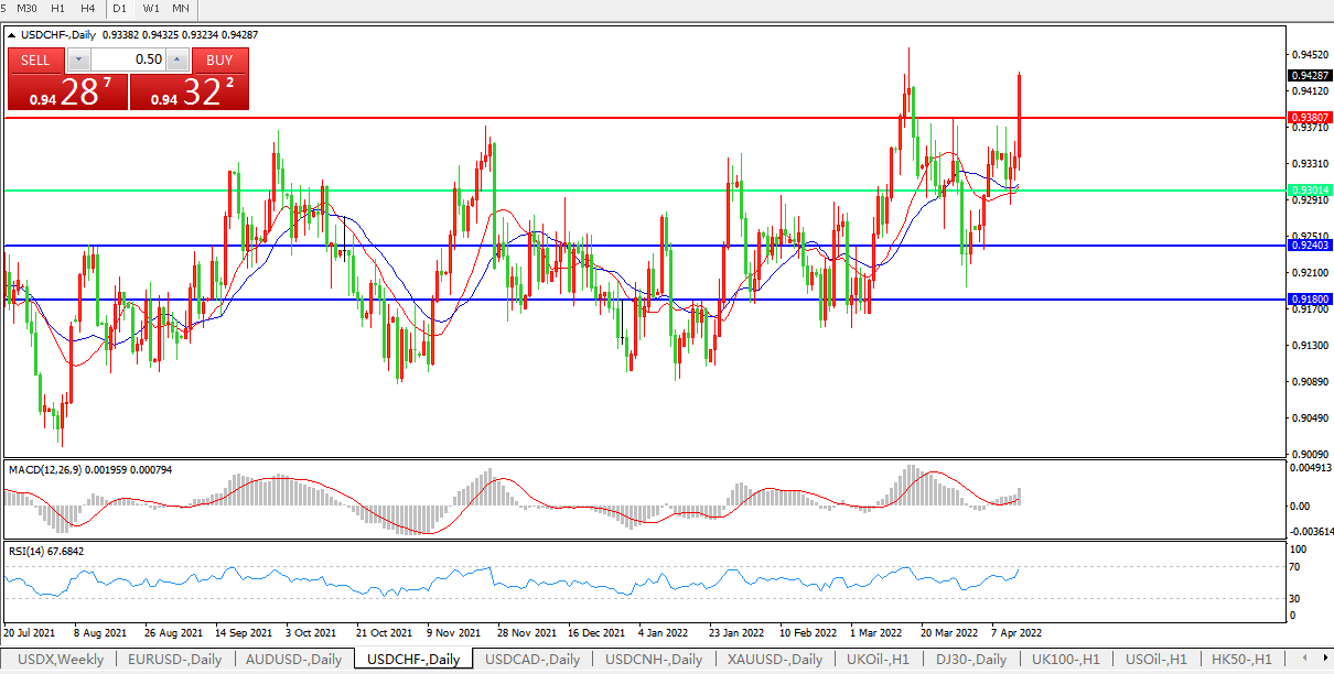 美元兑瑞郎USDCHF 日线图:
