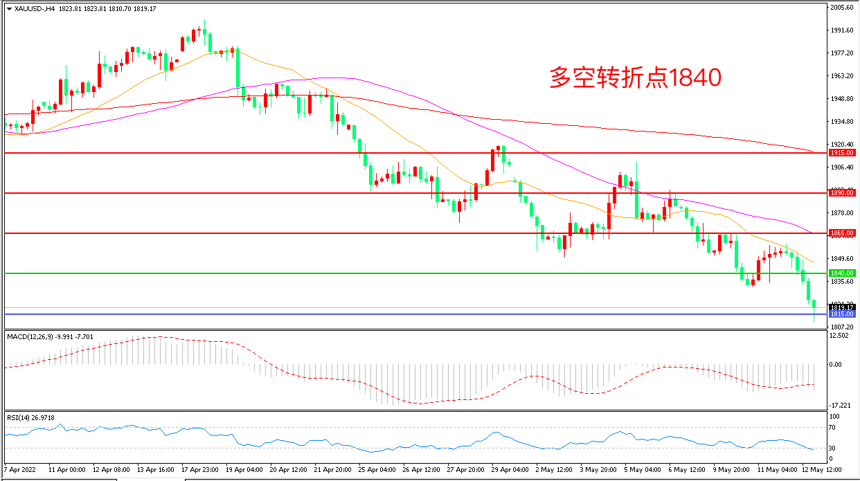 交易策略:在1840.00之下看跌,目标1815.00      1790.00