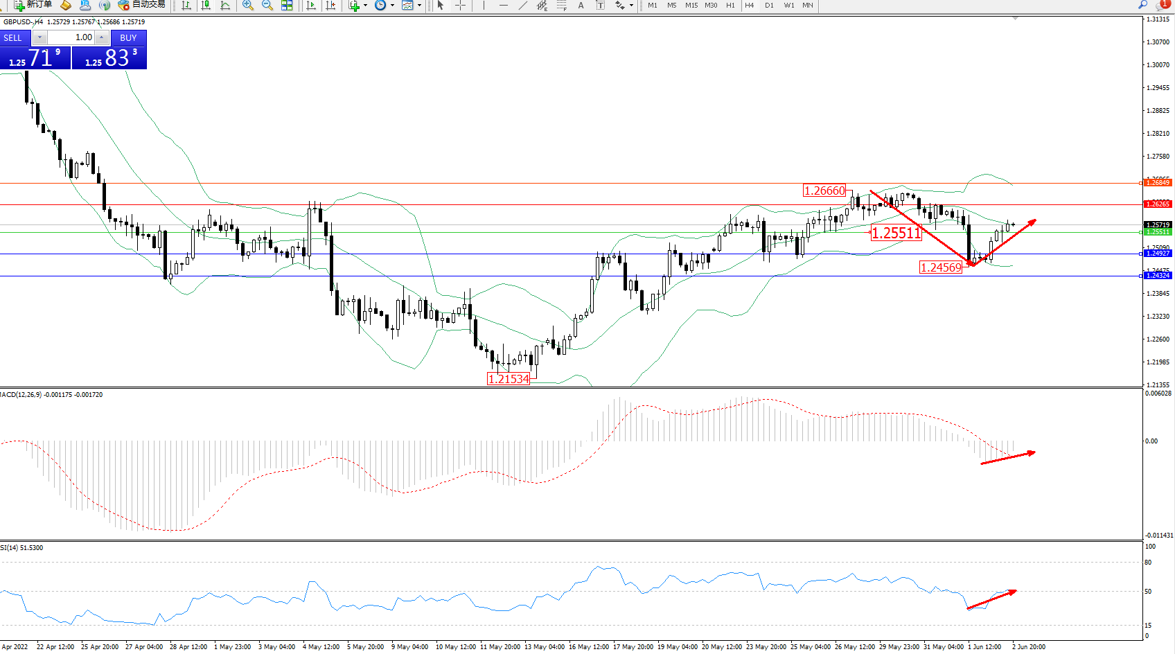 英镑美元GBPUSD ——4小时K线图显示: