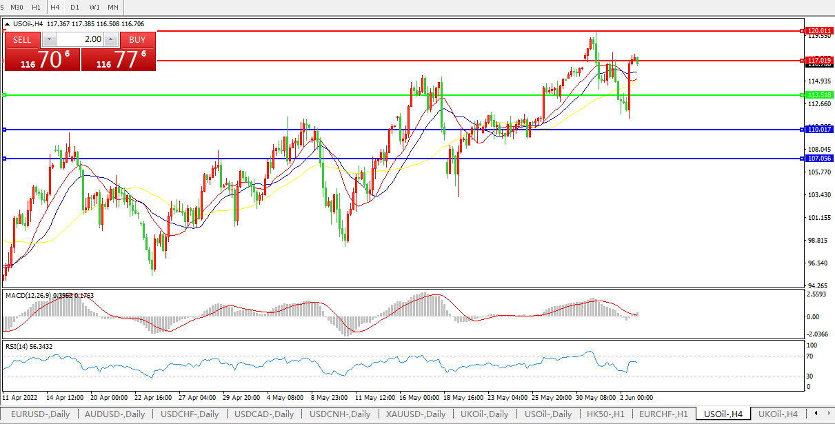 阻力位:117.00 120.00